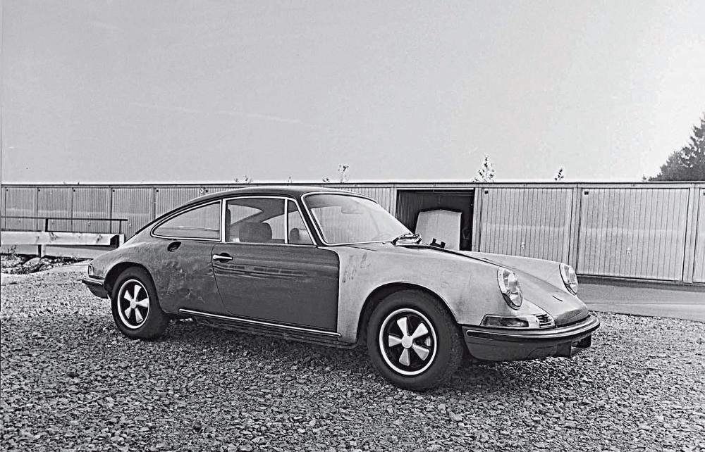 Following the Pininfarina four-seater concept, F. A. Porsche’s design staff created their own in 1970. Among other things this body tested was a passenger side location for the oil reservoir and its filler cap for production in 1972. Porsche Archiv