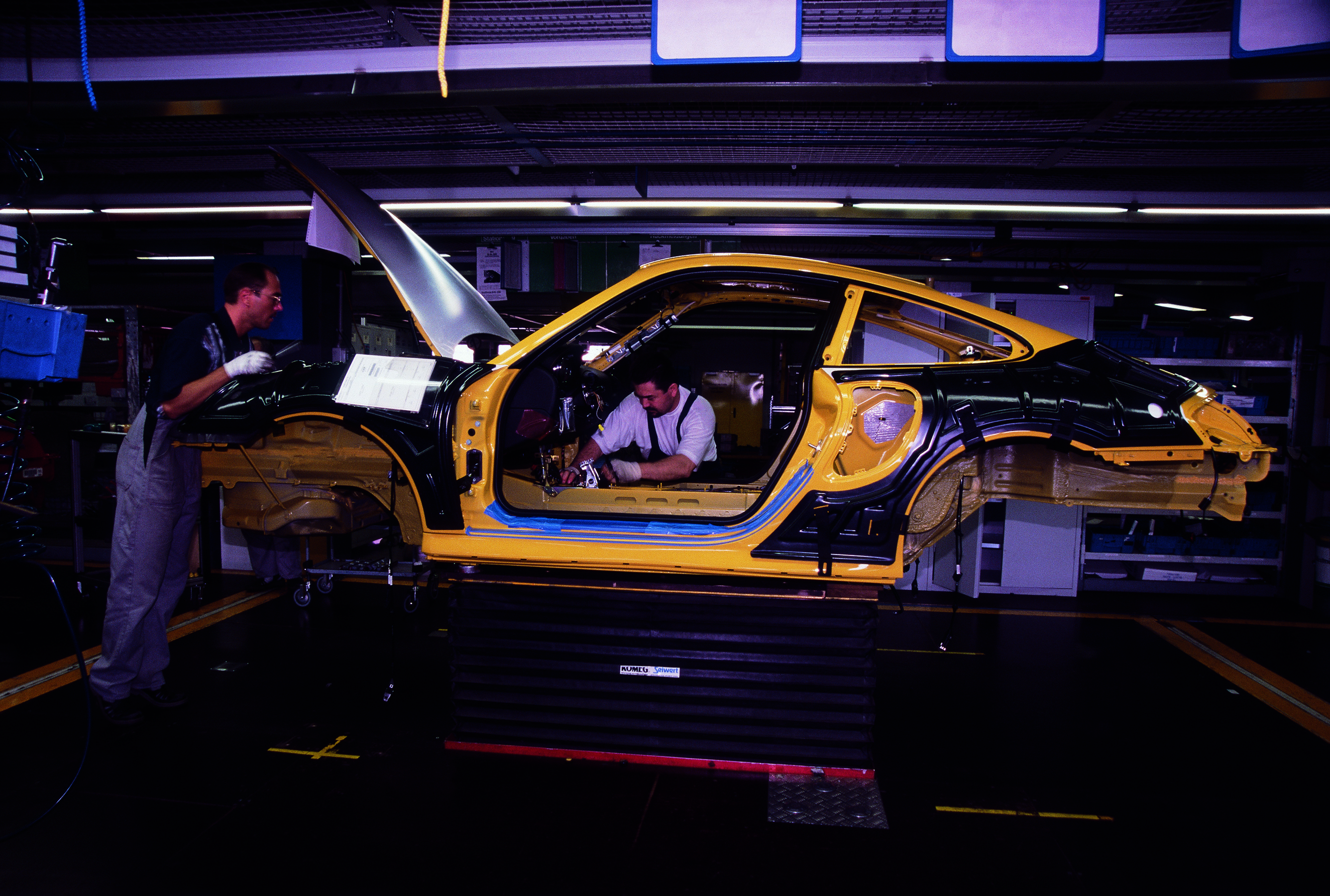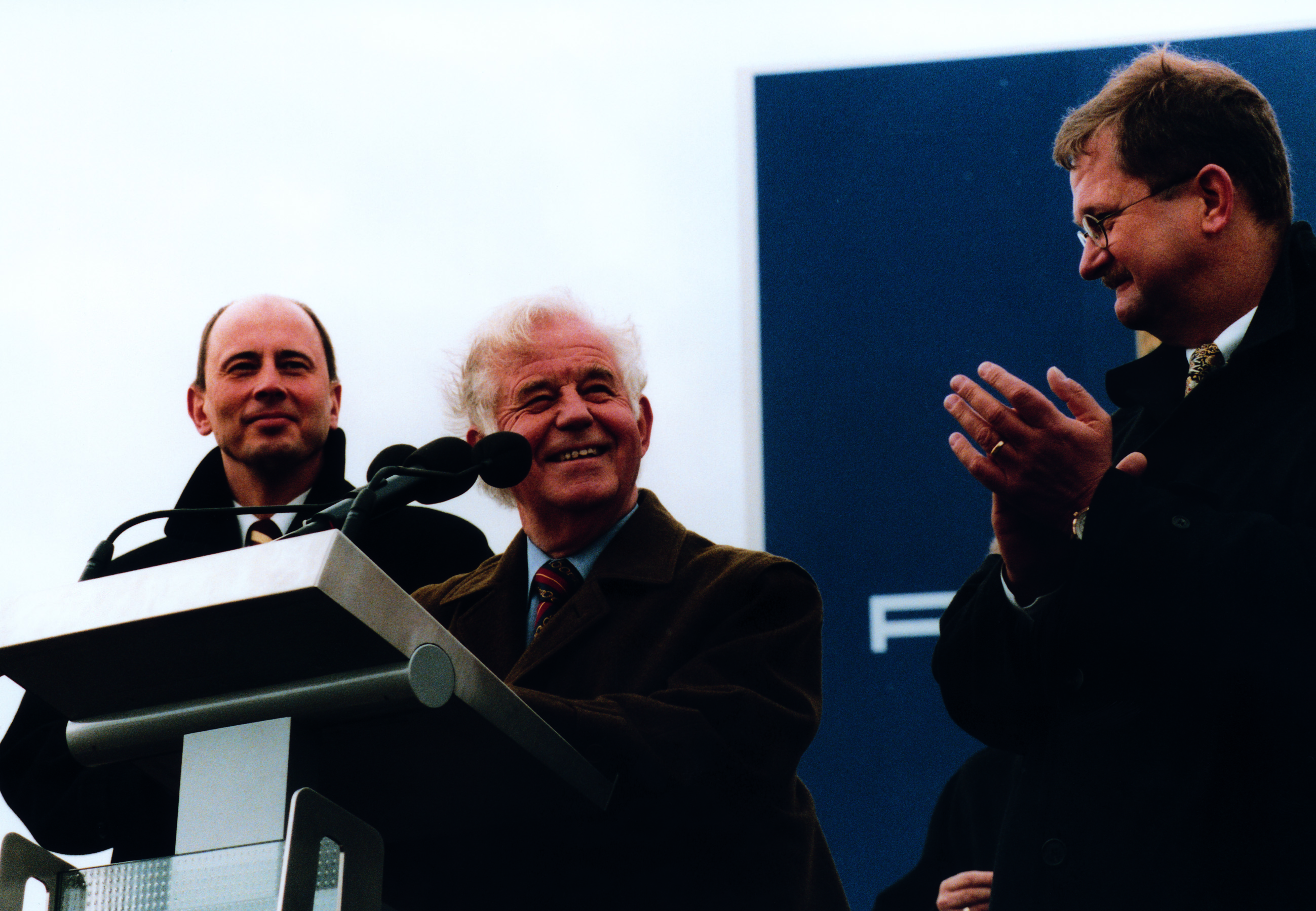 Ground-breaking ceremony on 7th February 2000 (from l. to r.): Mayor of Leipzig Mr. Wolfgang Tiefensee, State Head of Saxony Professor Kurt Biedenkopf and Chairman of the Board Dr. Wendelin Wiedeking
