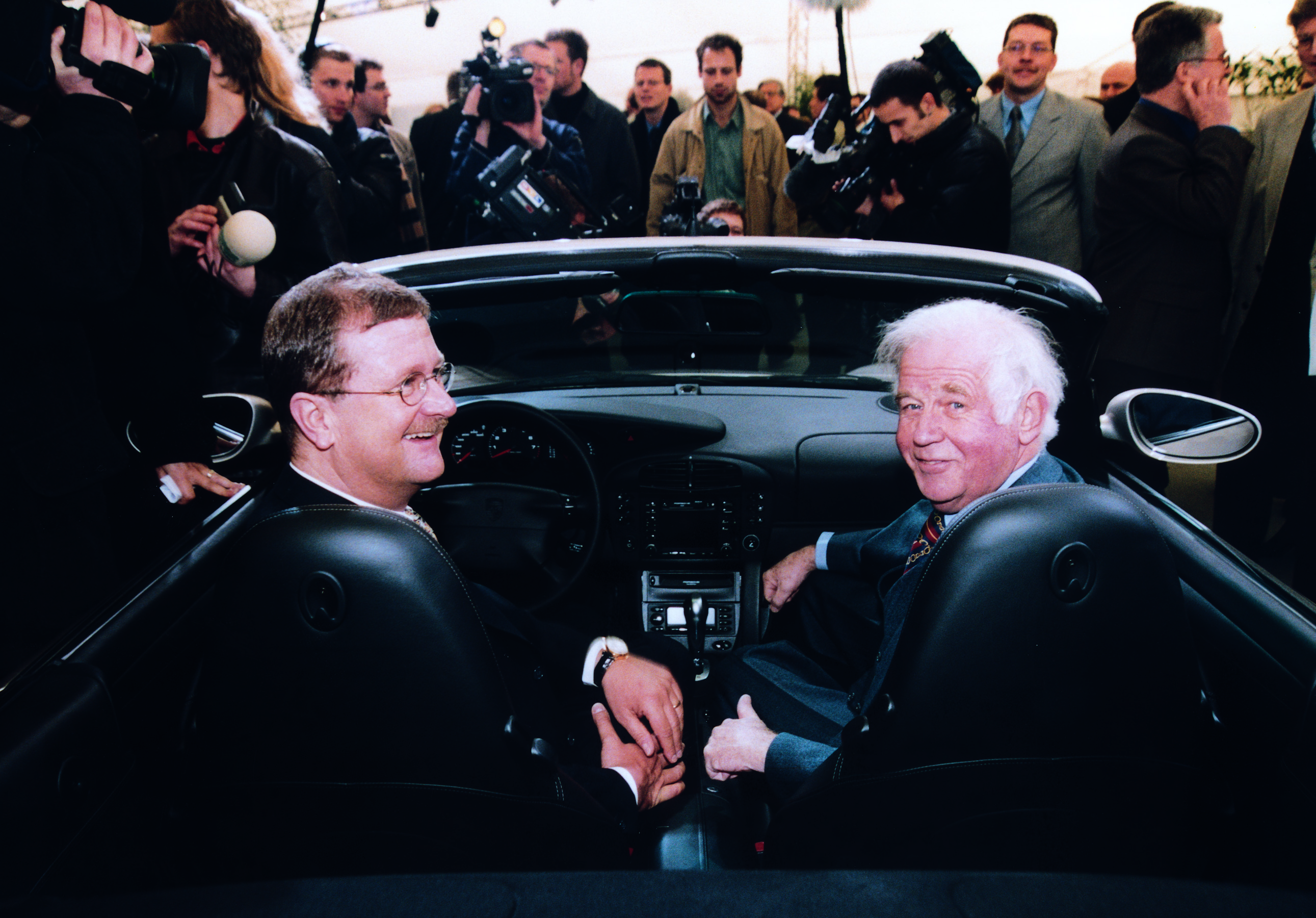 Ground-breaking ceremony on 7th February 2000: Chairman of the Board Dr. Wendelin Wiedeking (left) and State Head of Saxony Professor Kurt Biedenkopf
