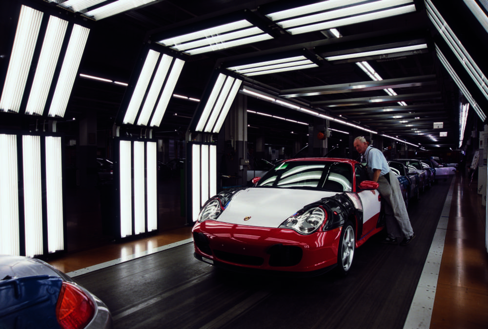 Before the cars leave production, the paintwork is checked again in the light tunnel
