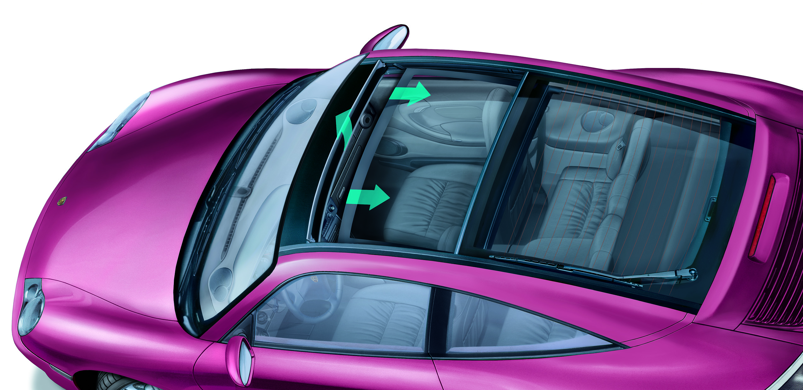 When opening the glass roof, a specially developed draught deflector extends automatically.