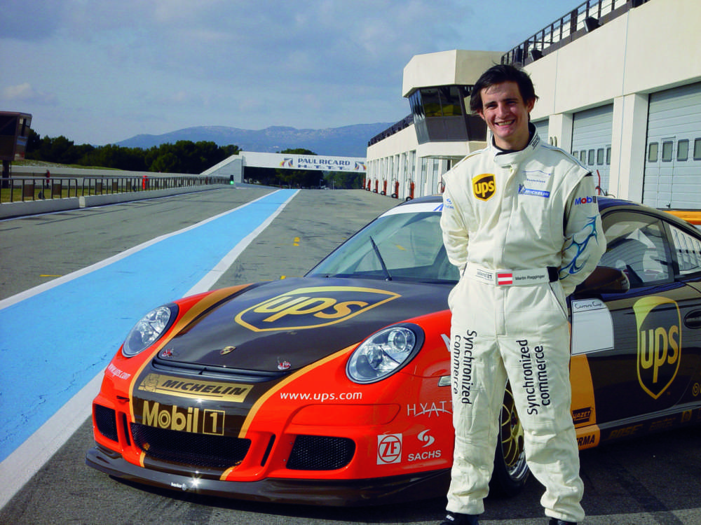 The new UPS-Porsche-Junior: Martin Ragginger in front of the Porsche GT3 Cup