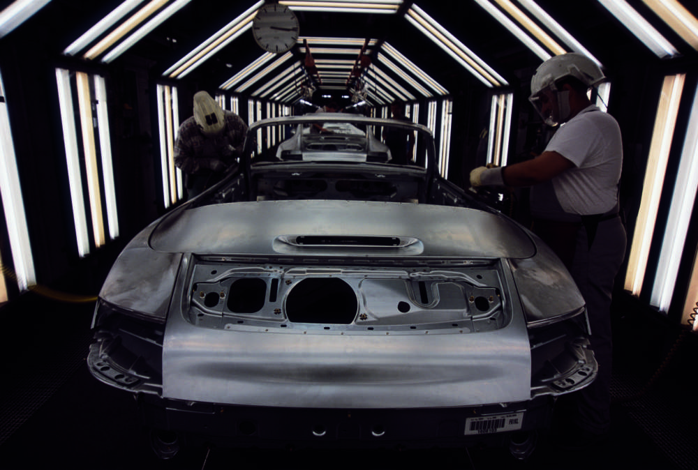 Final polish for the 911 body on the finishing belt
