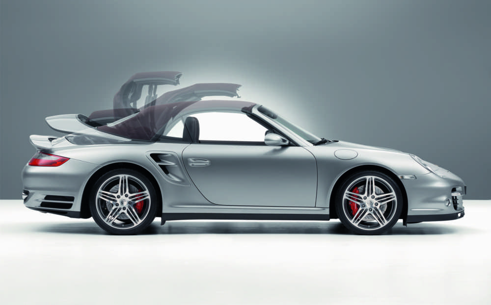 The fully-automatic fabric top of the 911 Turbo Cabriolet opens in just 20 seconds