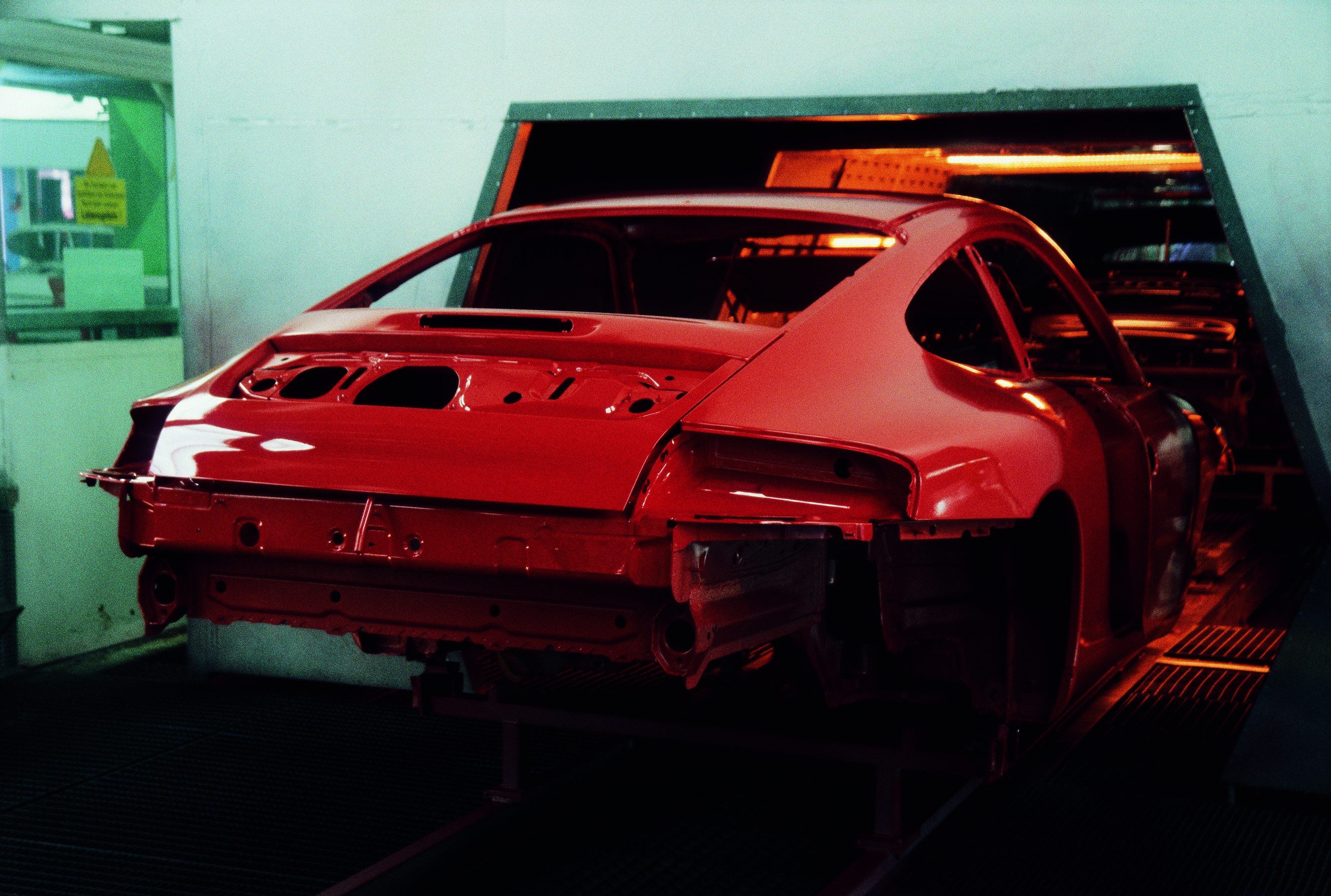 911 Carrera at the entrance to the water-based paint dryer