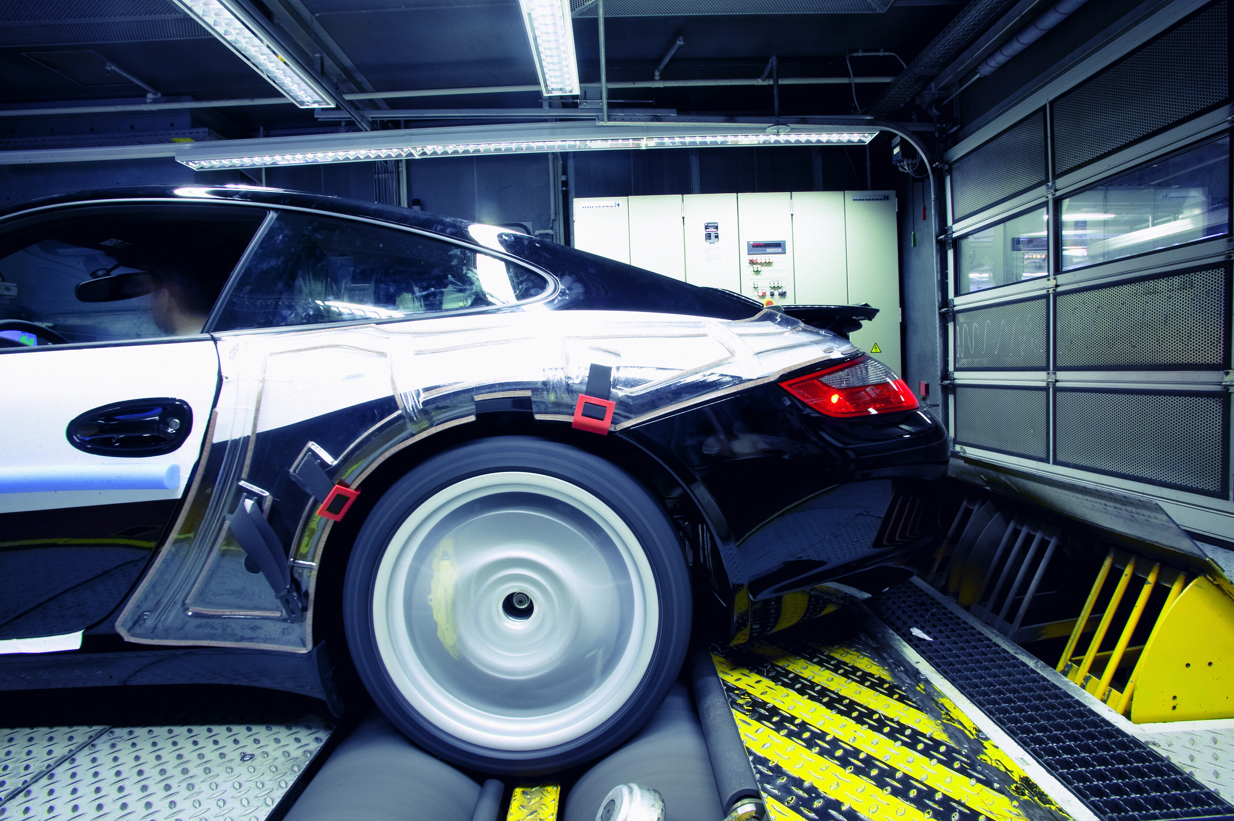 911 Carrera at the entrance to the water-based paint dryer