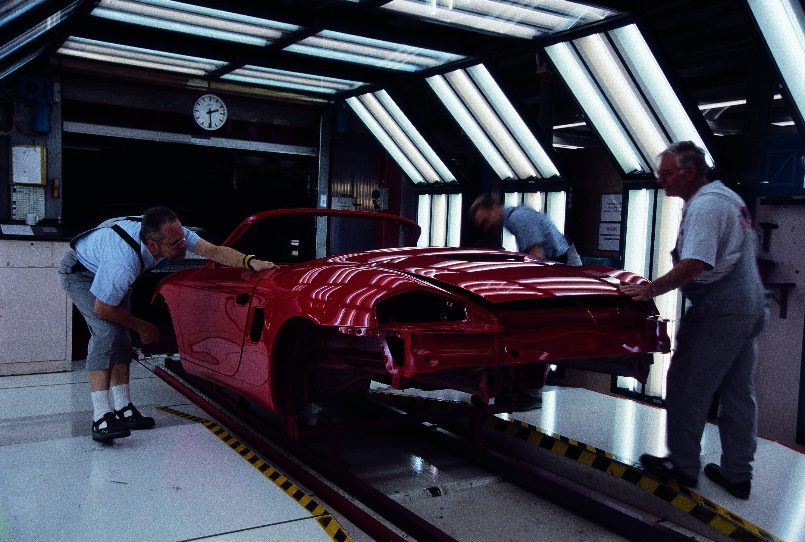 Quality check of the Boxster paint surface at the beginning of the polishing belt