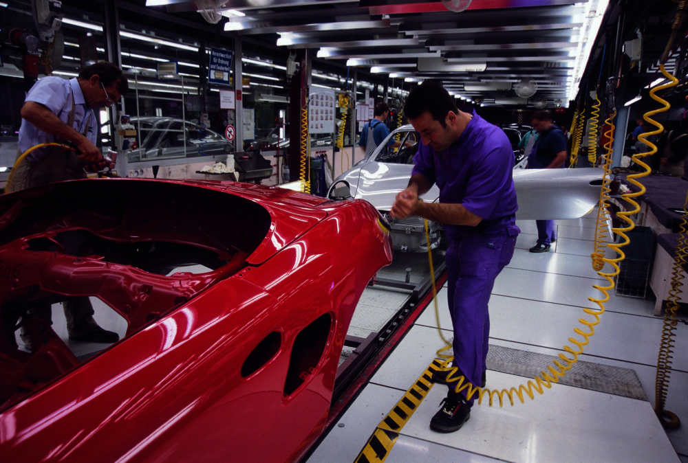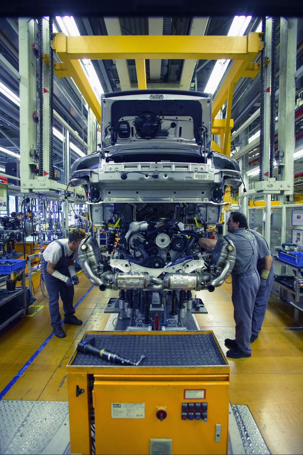 Quality check of the Boxster paint surface at the beginning of the polishing belt
