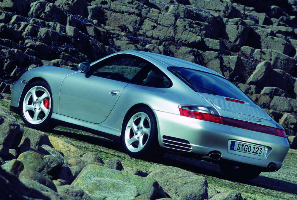 Front axle of the 911 Carrera 4S with multi-plate viscous coupling, drilled and ventilated brake discs (diameter 330 millimeters, width 34 millimeters) and red brake callipers