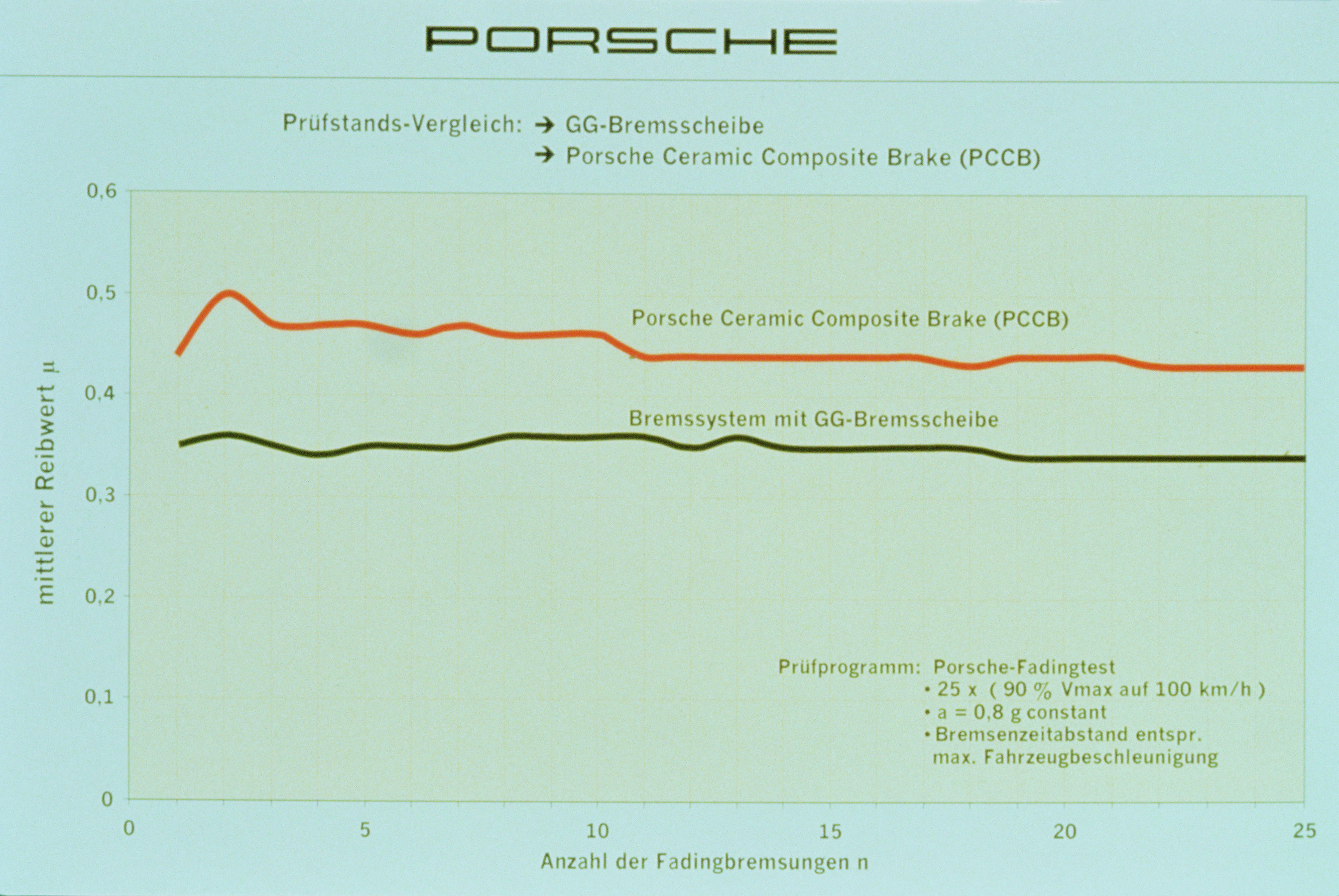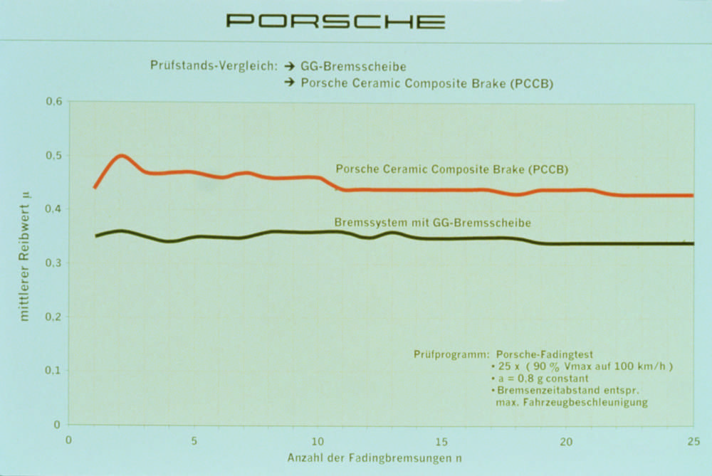 Comparison of friction values: grey cast iron brake disc versus Porsche Ceramic Composite Brake