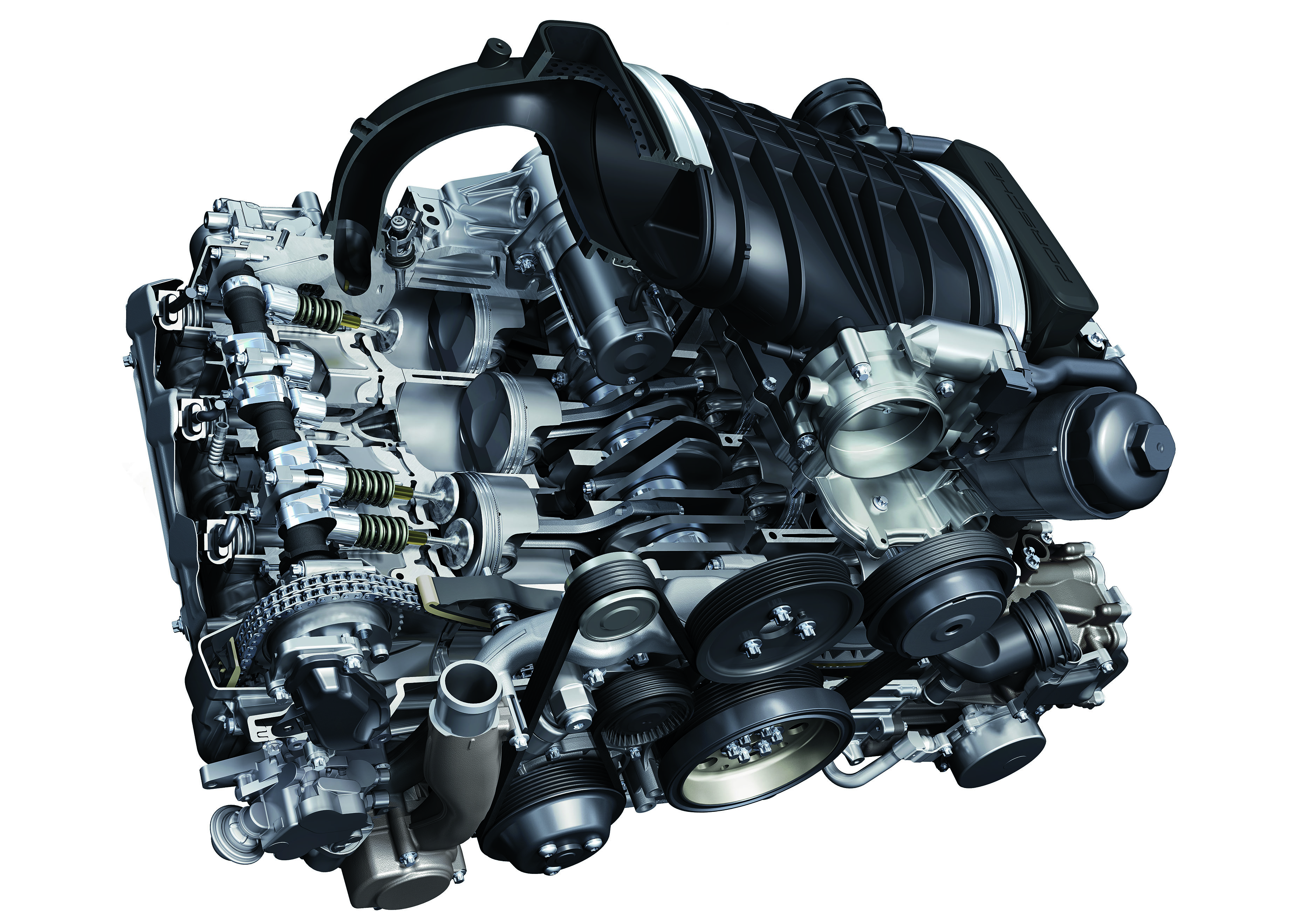The 3.6 l engine of the 911 Carrera 4 with direct fuel injection delivers 345 h.p.