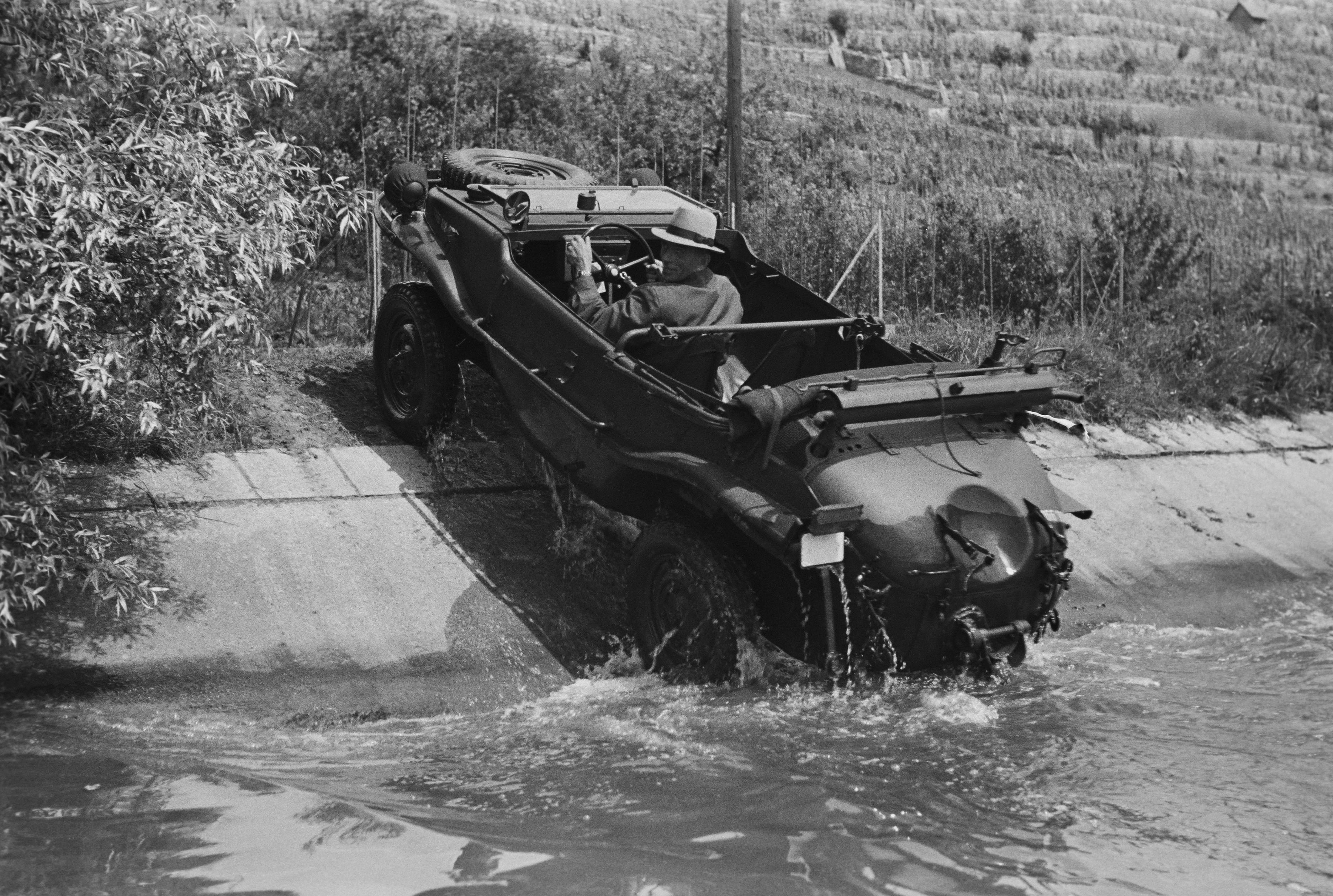 The all-wheel drive VW Schwimmwagen Porsche Type 166 at the test drives in 1942
