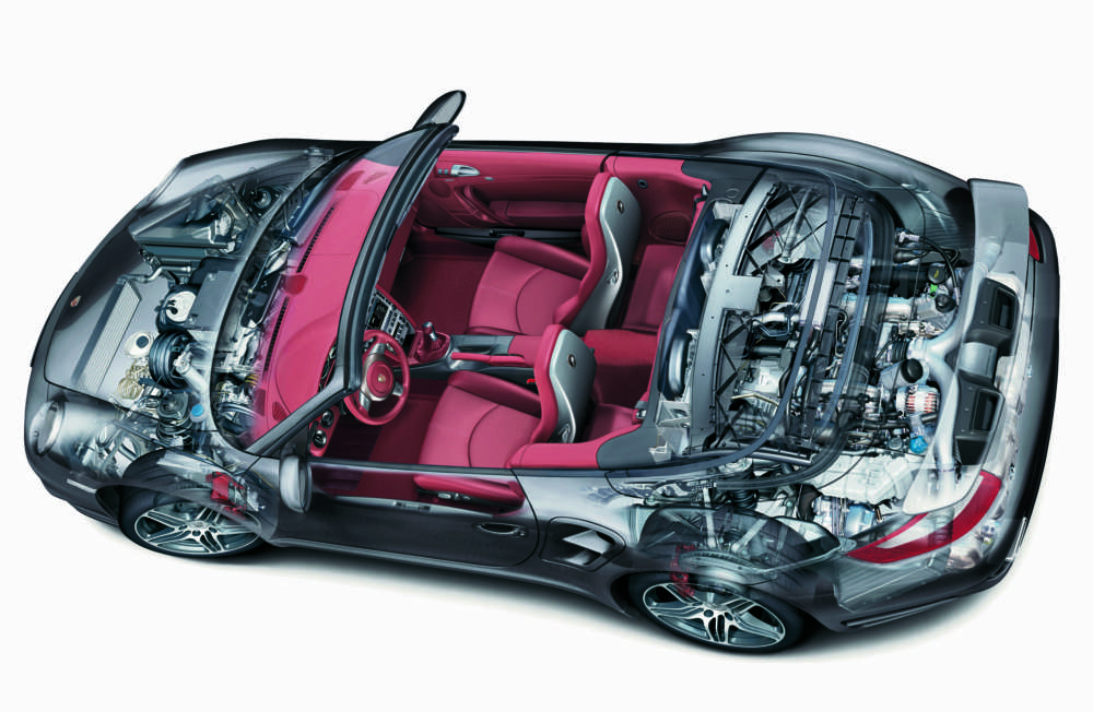 Phantom diagram of chassis and drive assemblies of the 911 Turbo Cabriolet