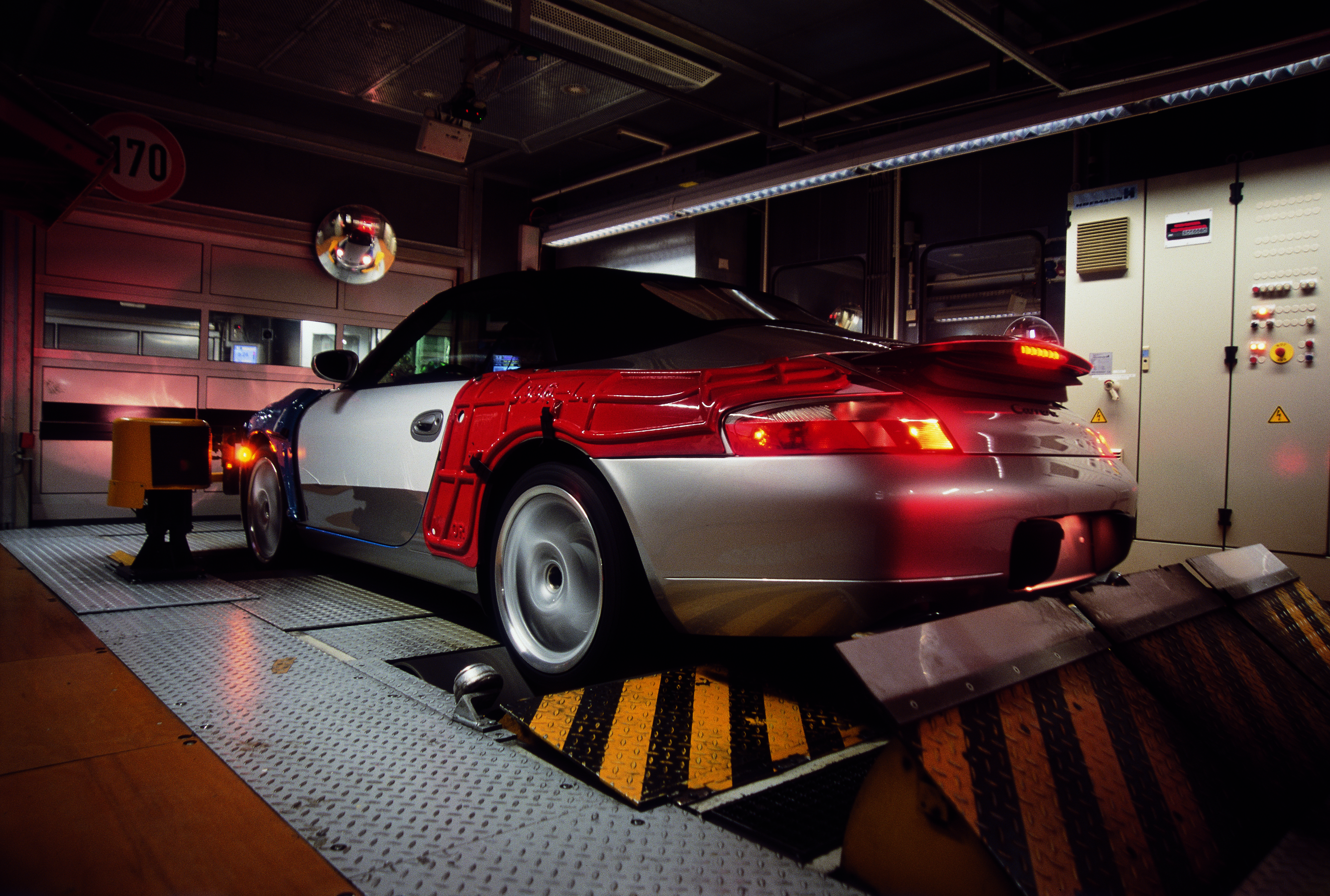 Correct functioning of the brakes, the ABS and the On-Board Diagnostic System are tested on a roller-type test stand