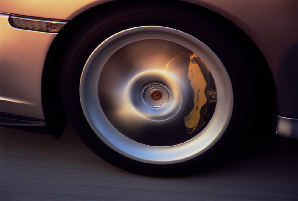 Six-piston brake caliper on the front axle of the 911 Turbo