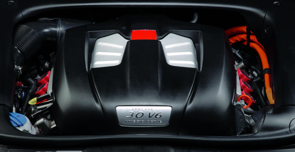 Engine compartment of the Cayenne S Hybrid