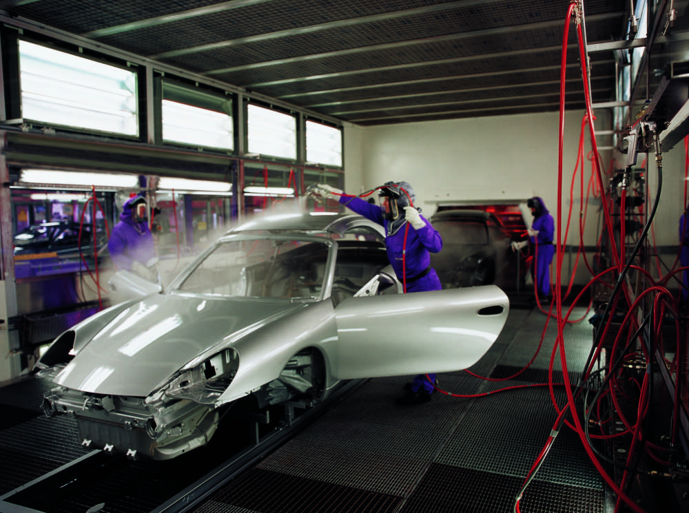 A 911 Carrera Cabriolet is given a coat of clear lacquer