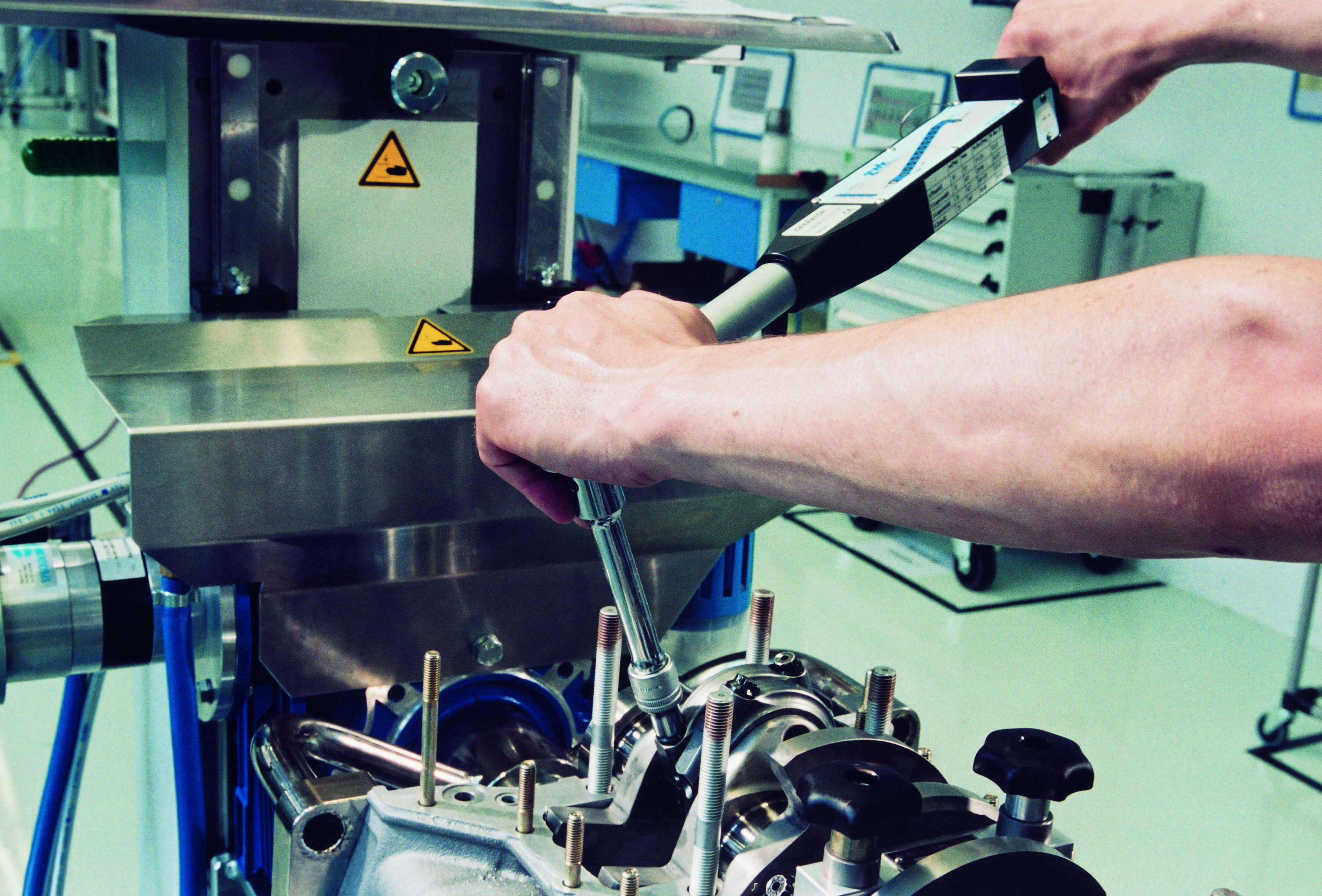 A programmed torque wrench with radio data monitoring helps to get the connecting rodâÂÂs screw connection just right in the Carrera GT engine.