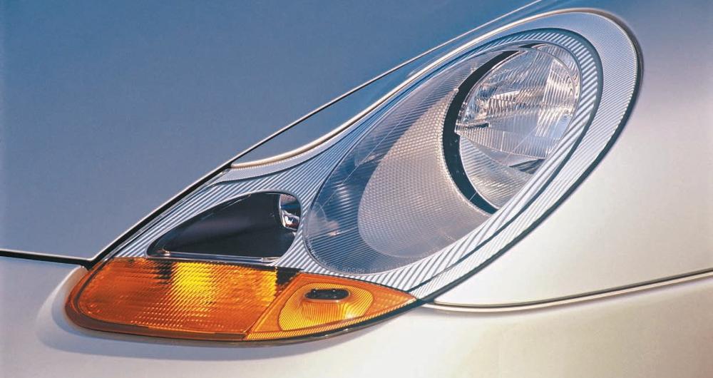 The complex one-piece headlight assembly resulted from production demands for faster assembly. The one-piece fixture incorporated five light functions yet mounted in the car in 20 seconds. Porsche Archiv