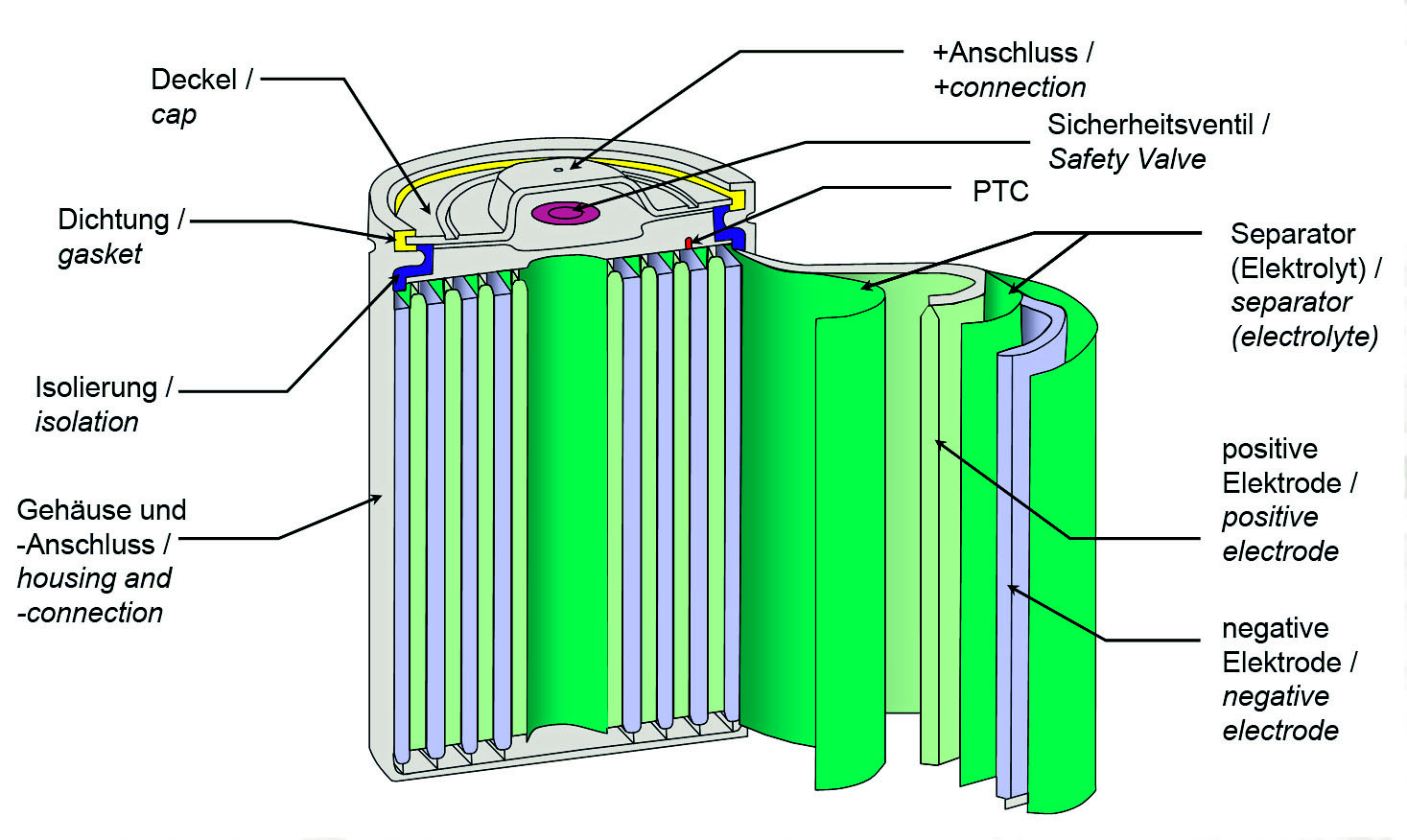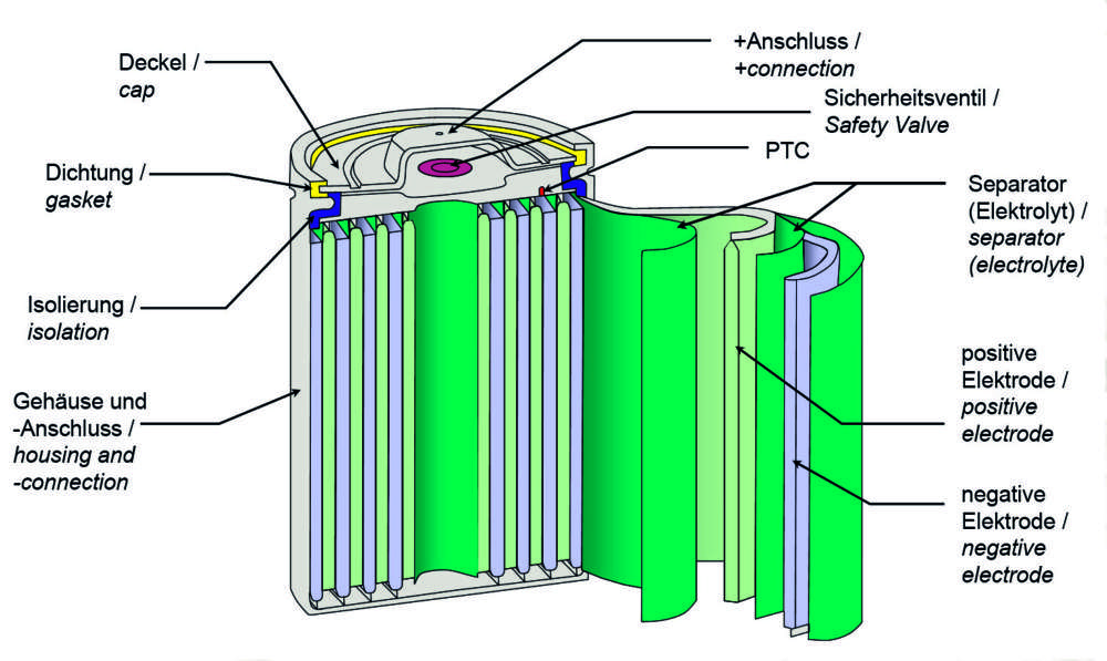 Cutaway graph lithium ion battery: max 55 KW