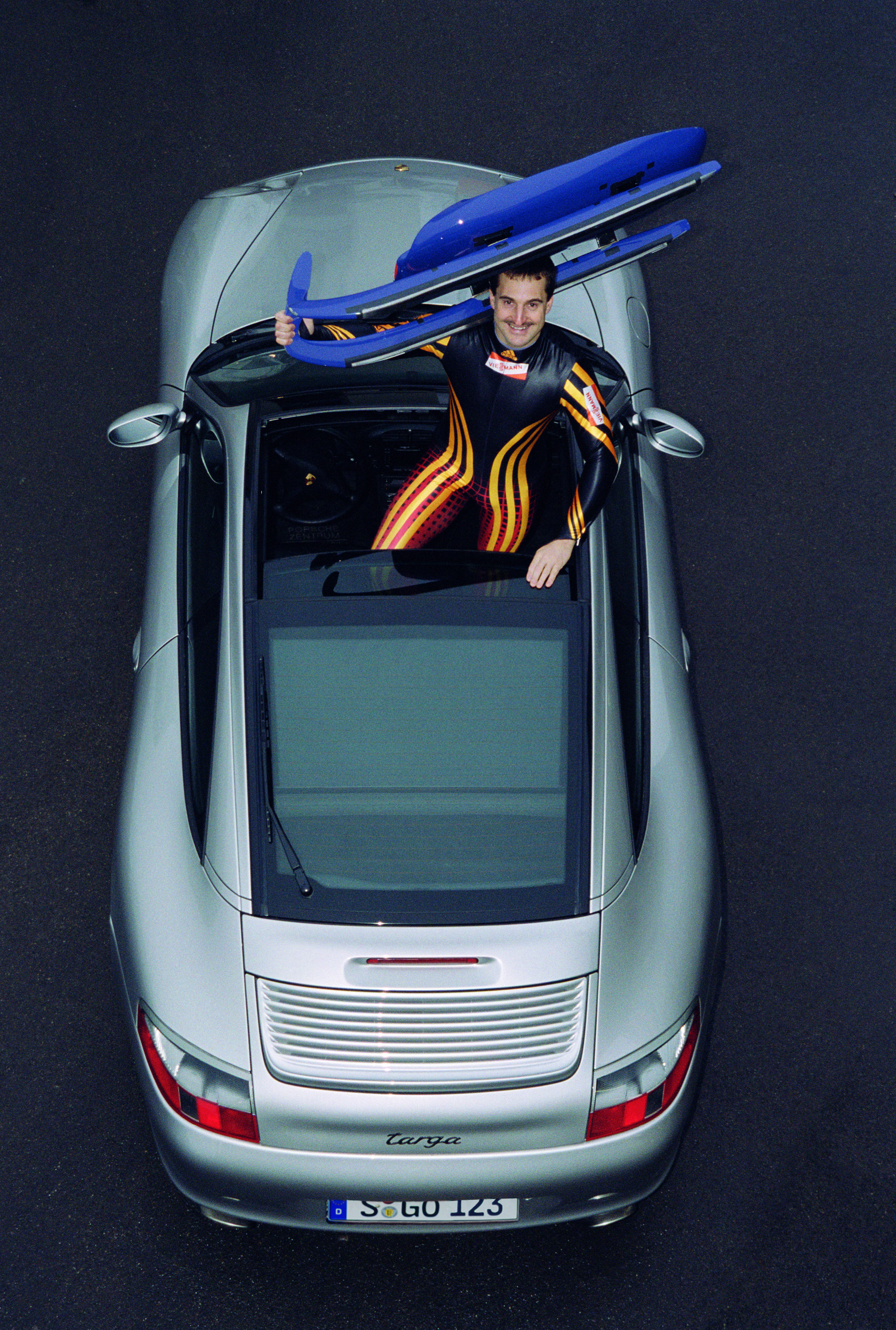 Partners in sport: The luger Georg Hackl (35) and Porsche.
