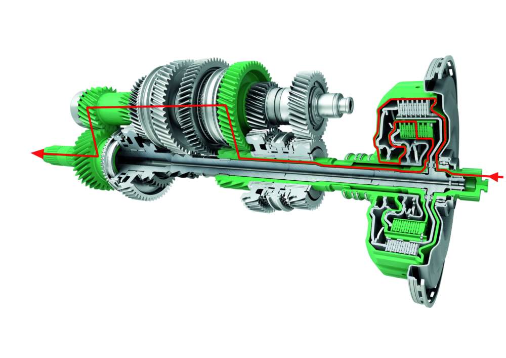 Flow of forces with the Porsche double-clutch system (PDK) in second gear