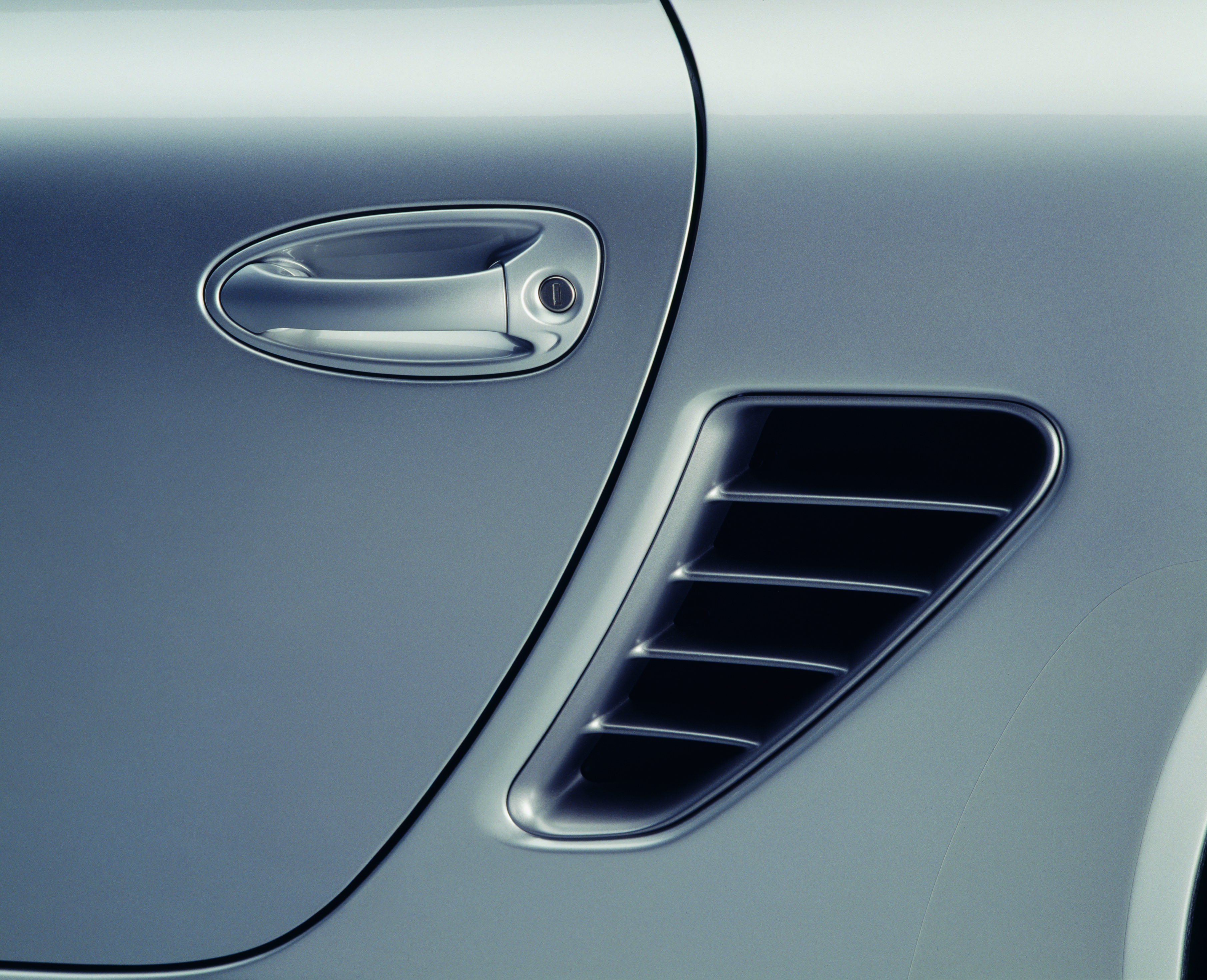 The newly designed, larger air inlet in the rear side section adopts the shapeof the Carrera GT's air inlets.