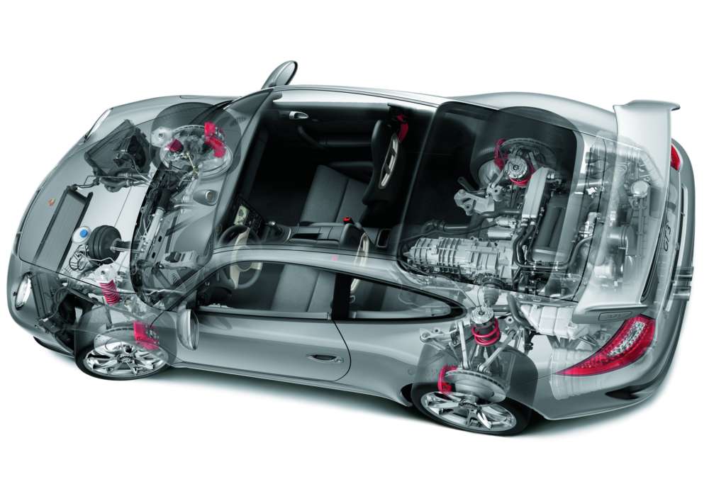 Phantom diagram of chassis and drive assemblies of the 911 GT3