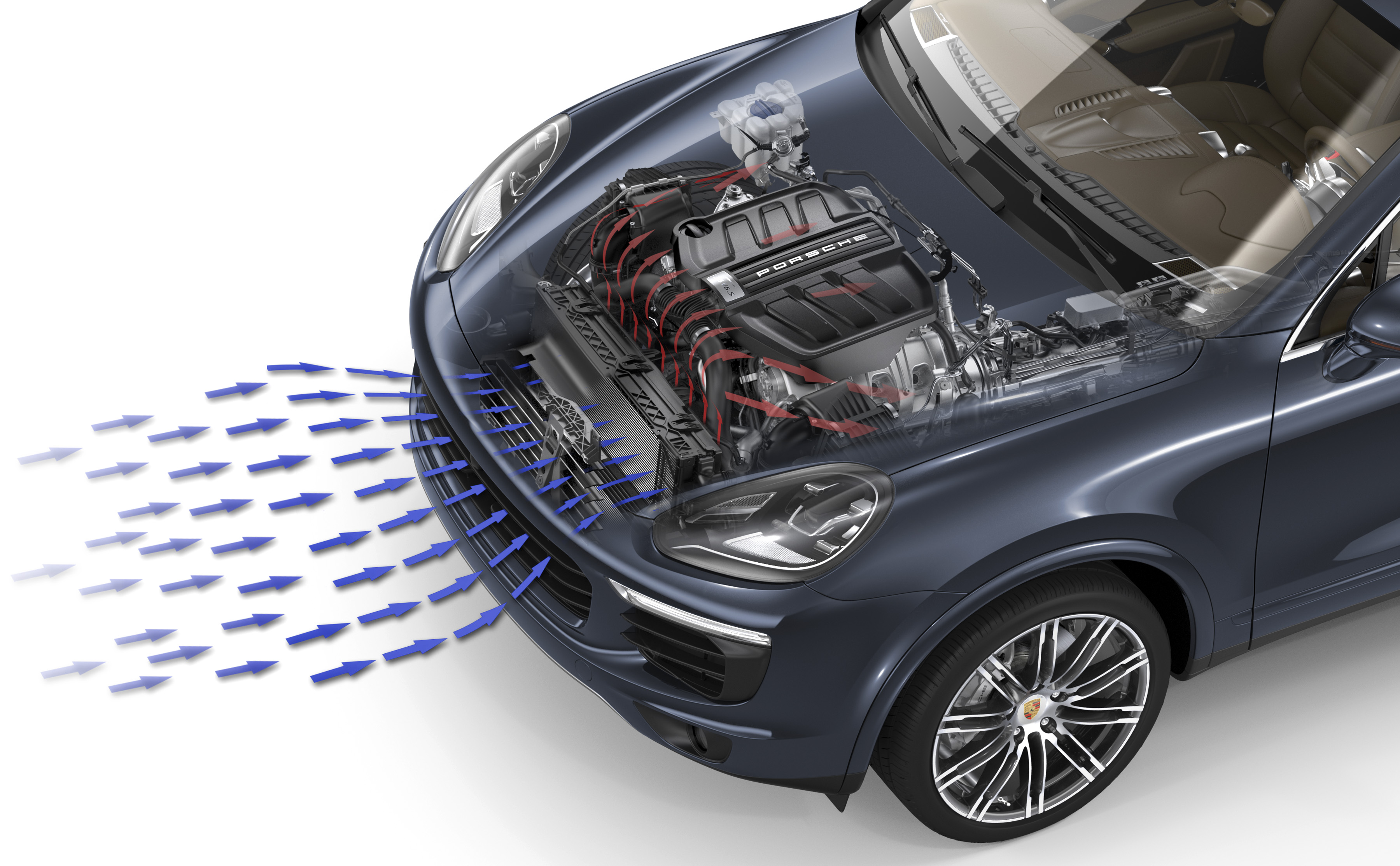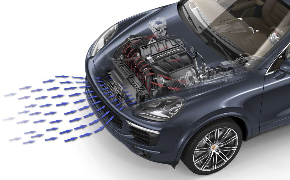 Porsche Cayenne: active cooling air flaps behind central air intake