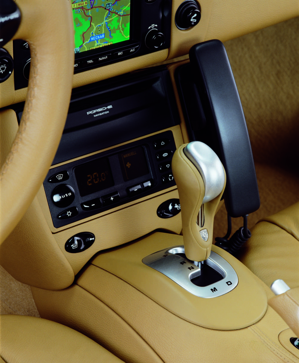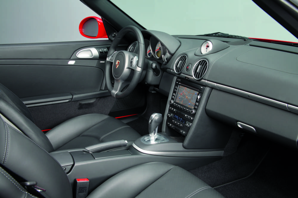 Interior equipment of the Boxster, including the Porsche-Doppelkupplungsgetriebe (PDK) and Porsche Communication Management (PCM) with touch screen