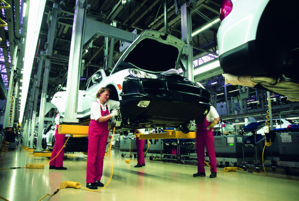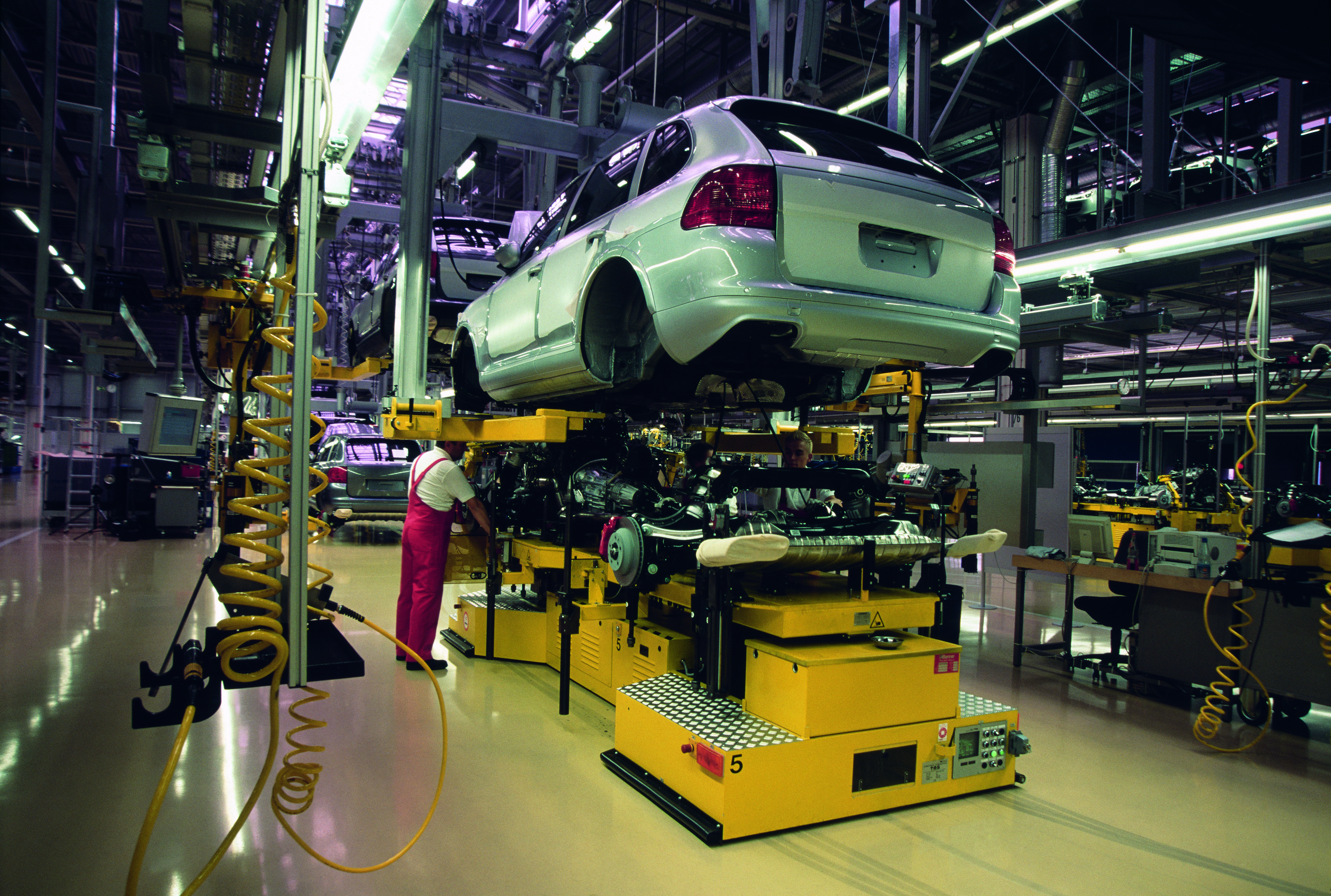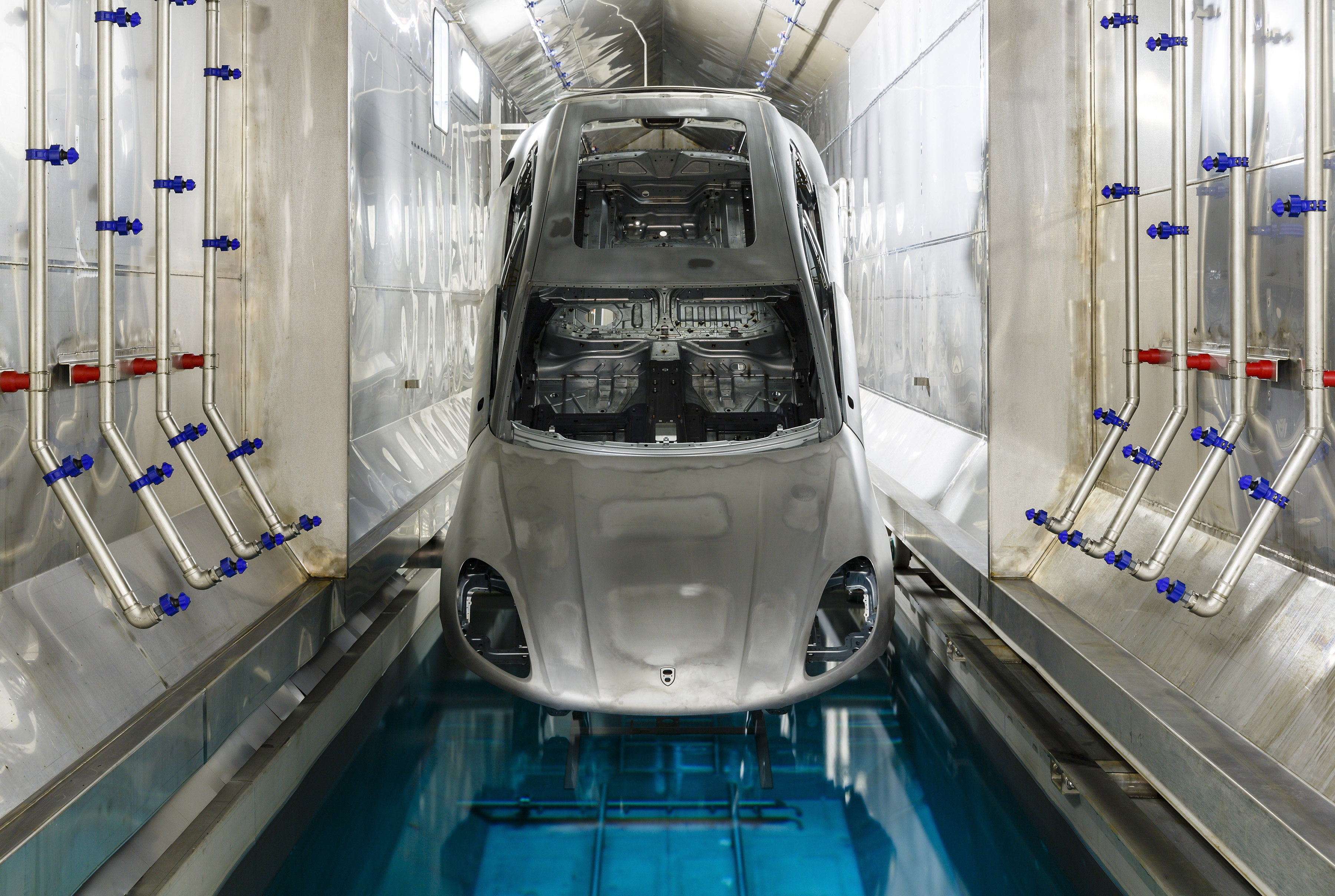 The finisher positions the body and drive line precisely to the millimeter for the marriage.