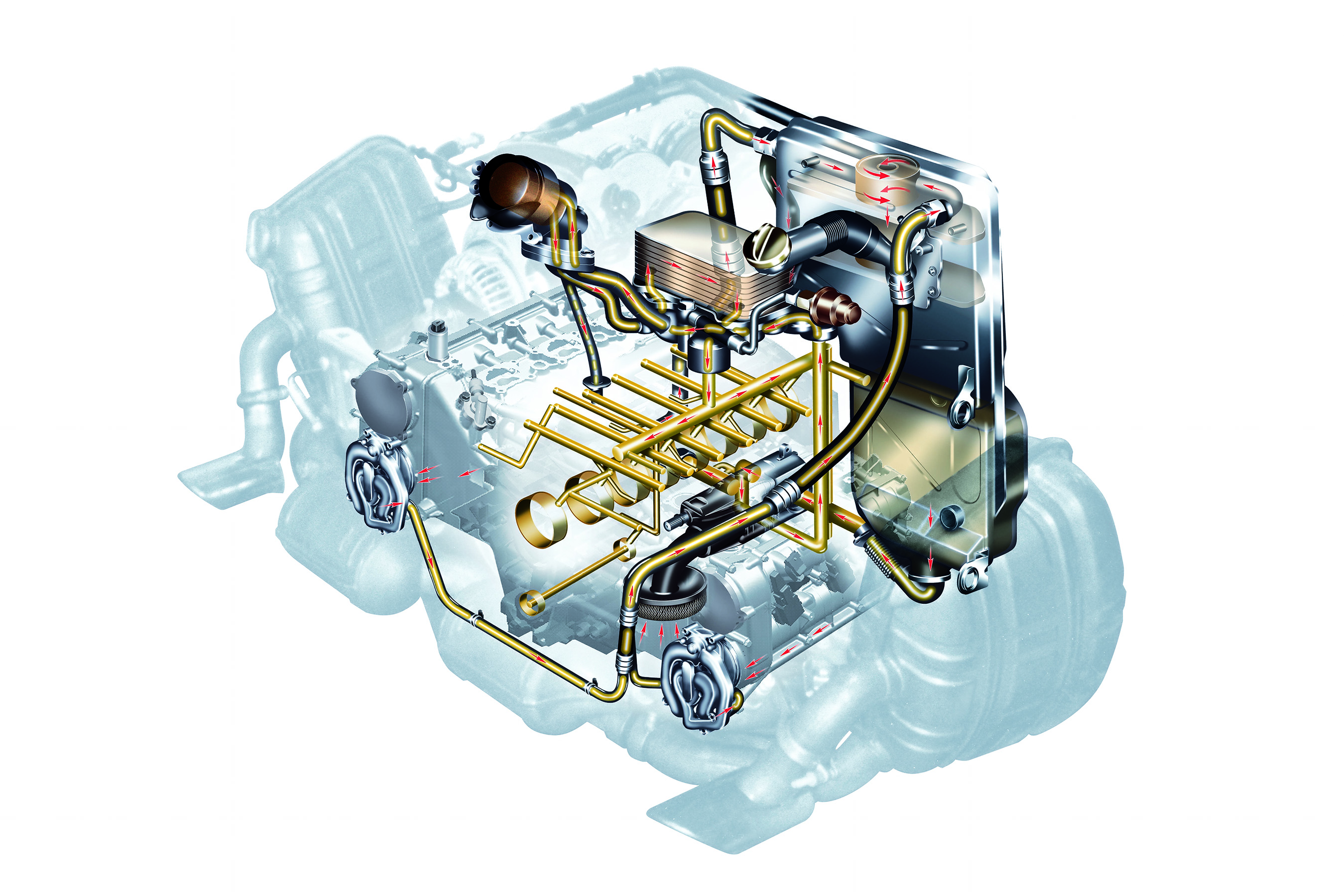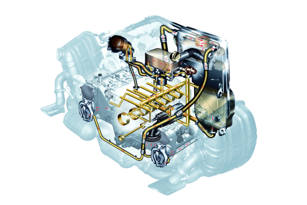 Oil circuit: The dry sump lubrication with separate oil tank ensures the best possible oil supply to the engine under all conditions
