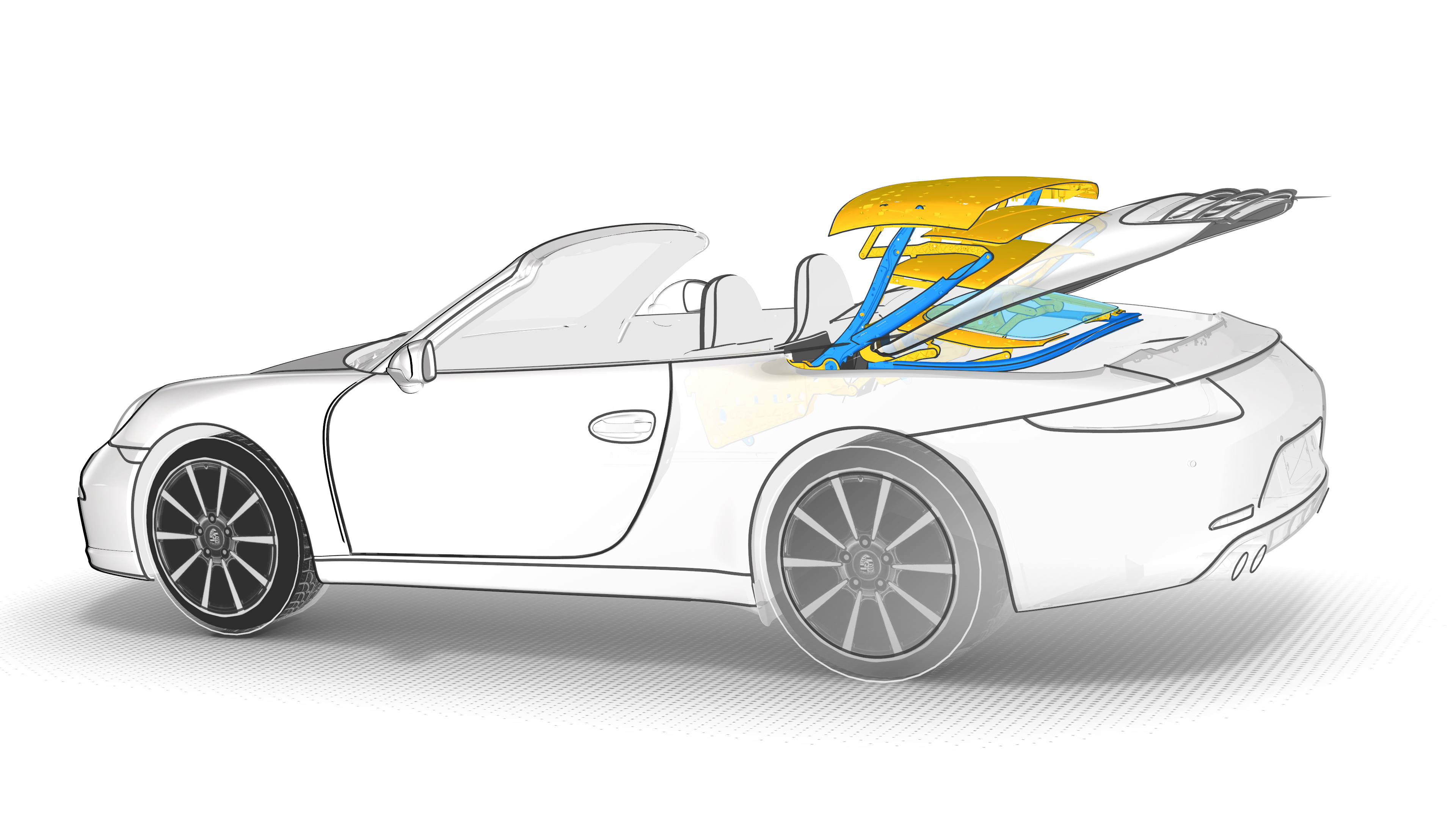 The magnesium panel bow top of the 911 Carrera Cabriolet