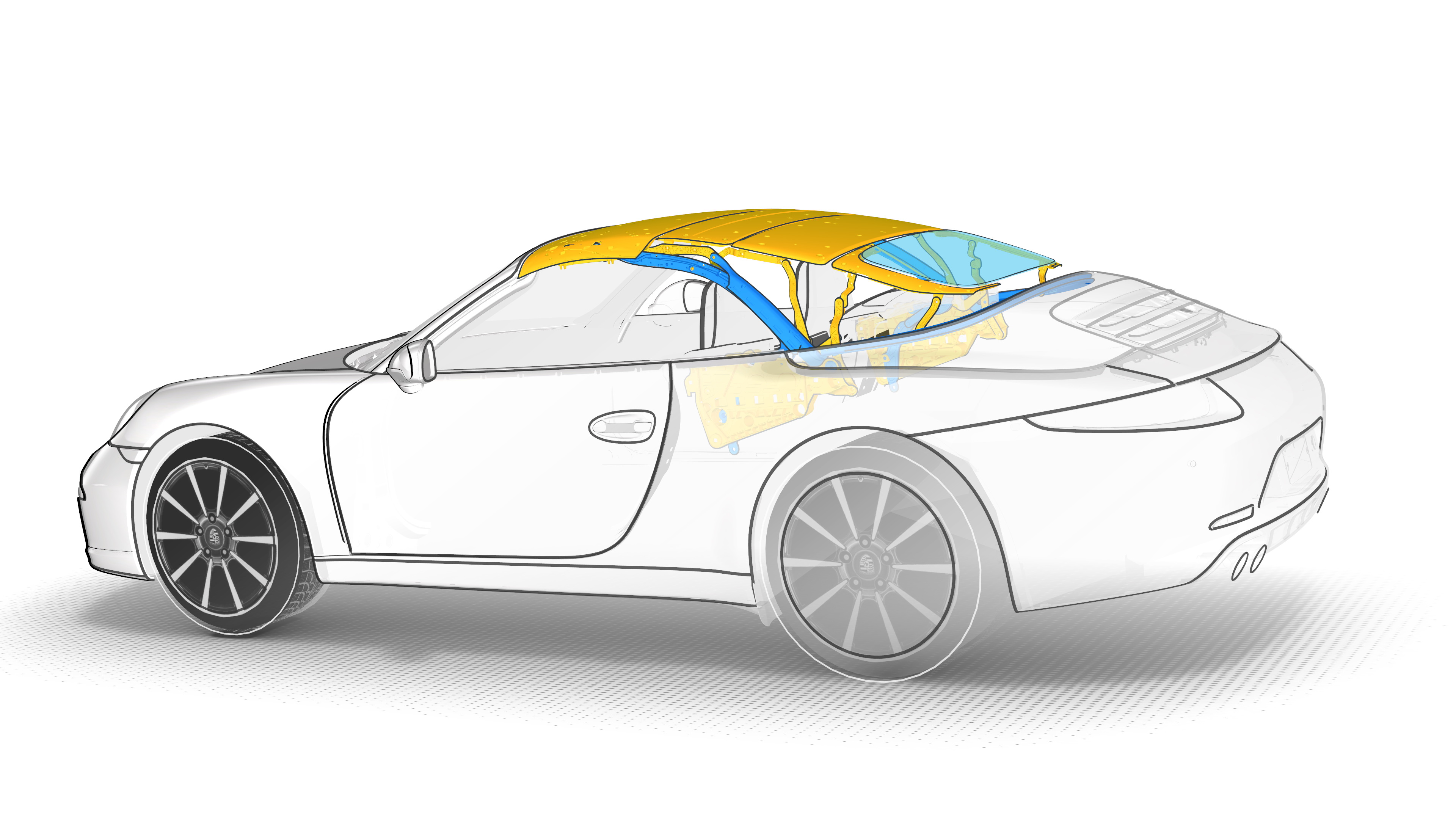 The magnesium panel bow top of the 911 Carrera Cabriolet