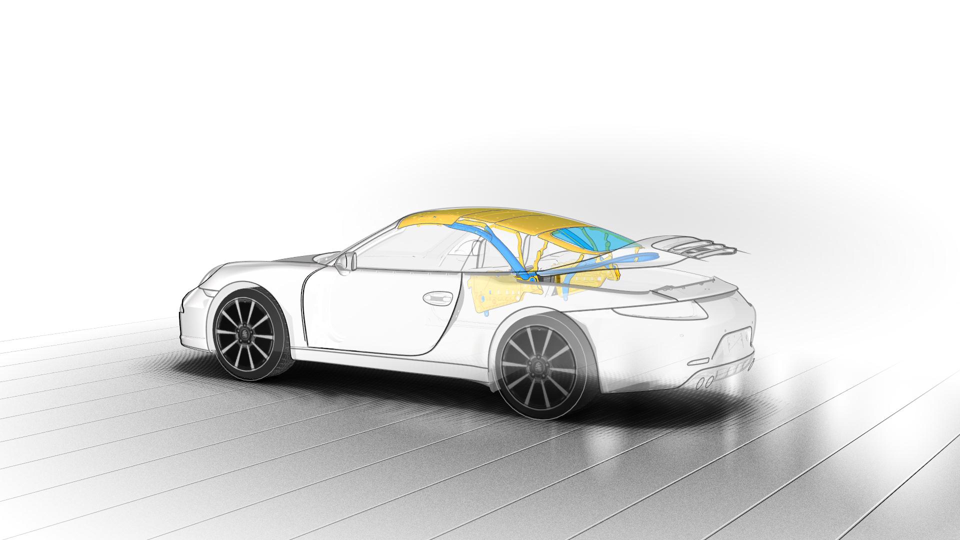 The magnesium panel bow top of the 911 Carrera Cabriolet