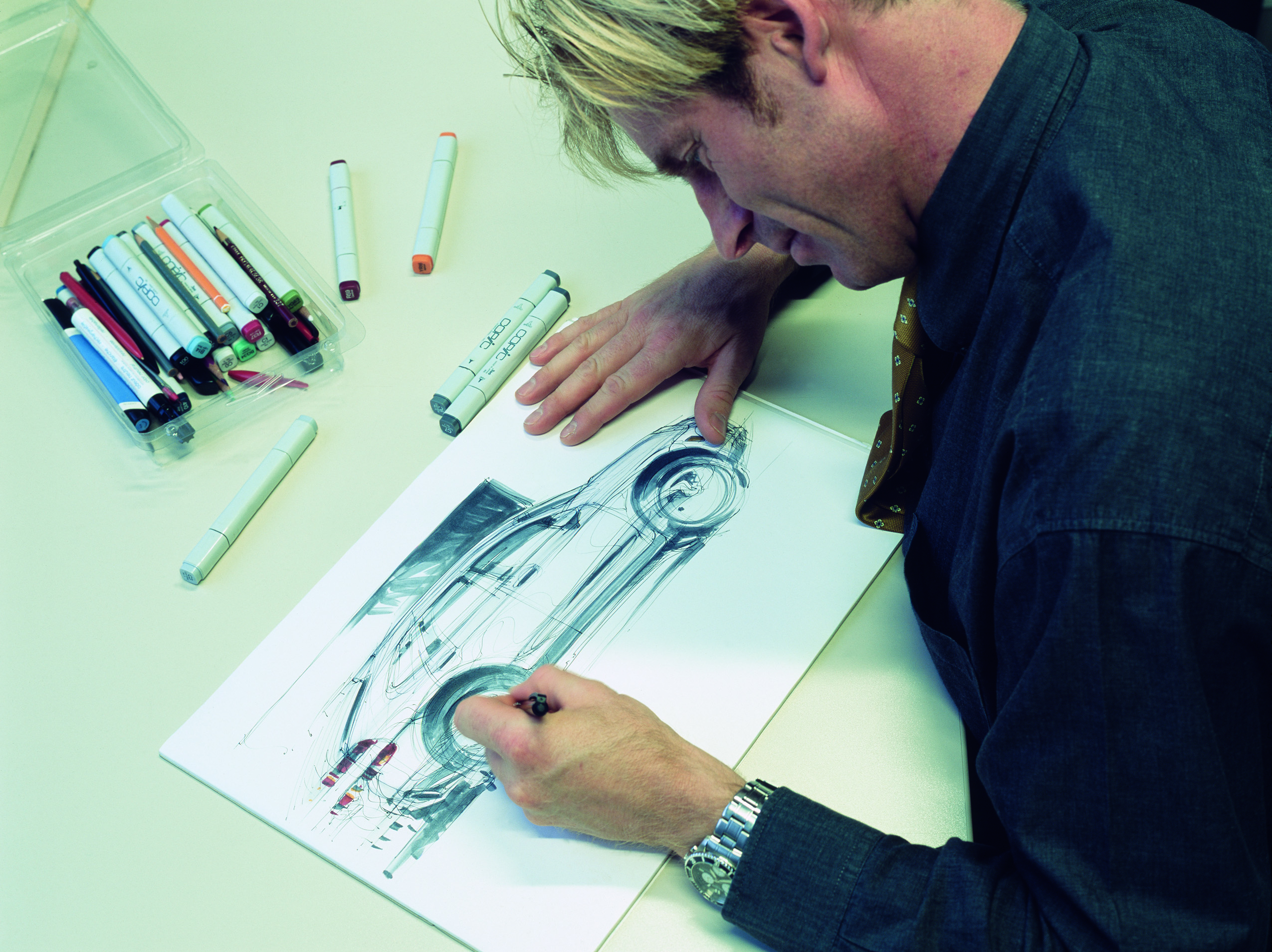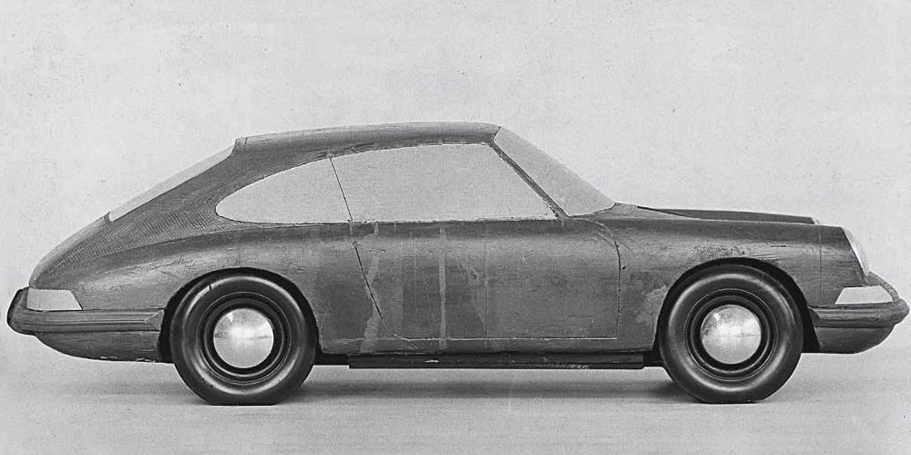 With every model, a few more changes massaged the forms into place. On this late-1961 1:7.5 Plasticine version, the roofline stayed straight for a longer distance, but on the sides of the model, the first indications of door cut lines appeared. Porsche Archiv