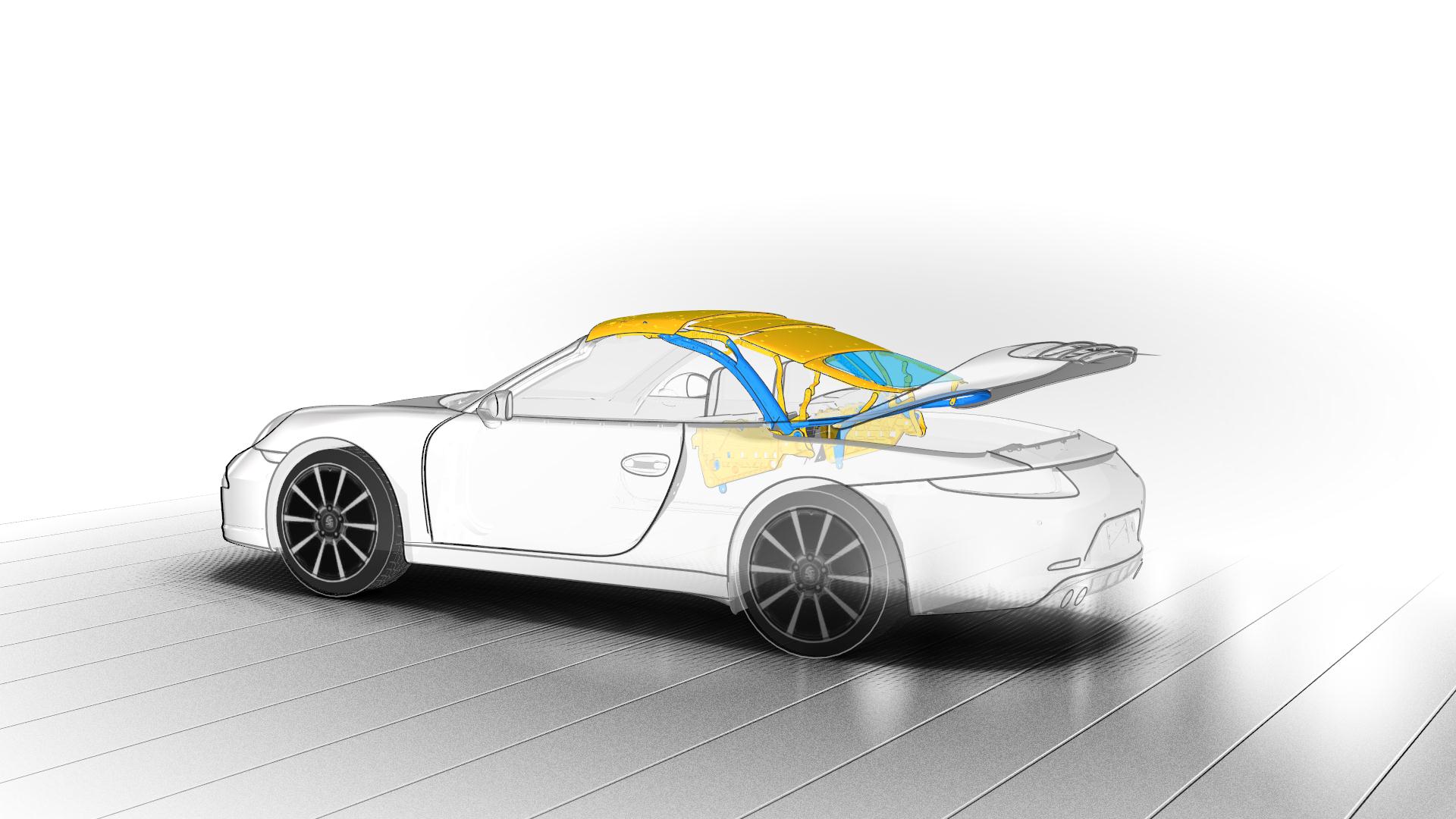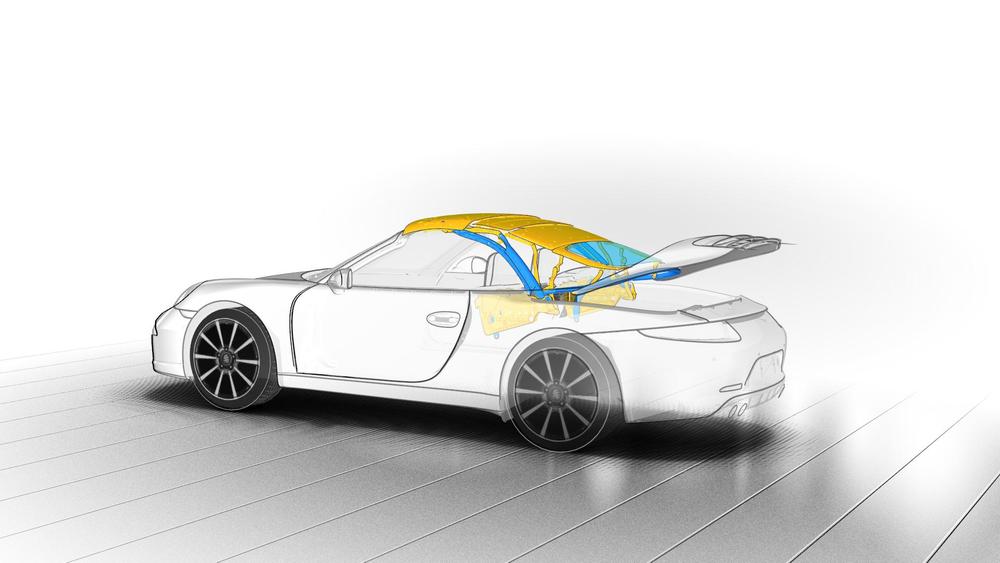 The magnesium panel bow top of the 911 Carrera Cabriolet