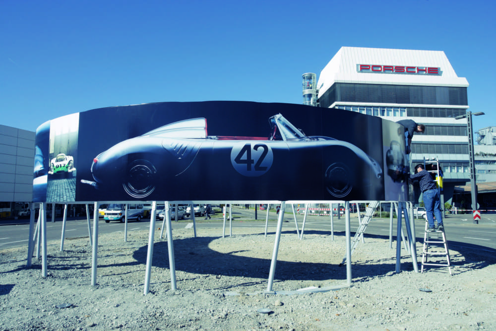 With the installation of the special construction site sign, the official construction start of the new Porsche Museum began.