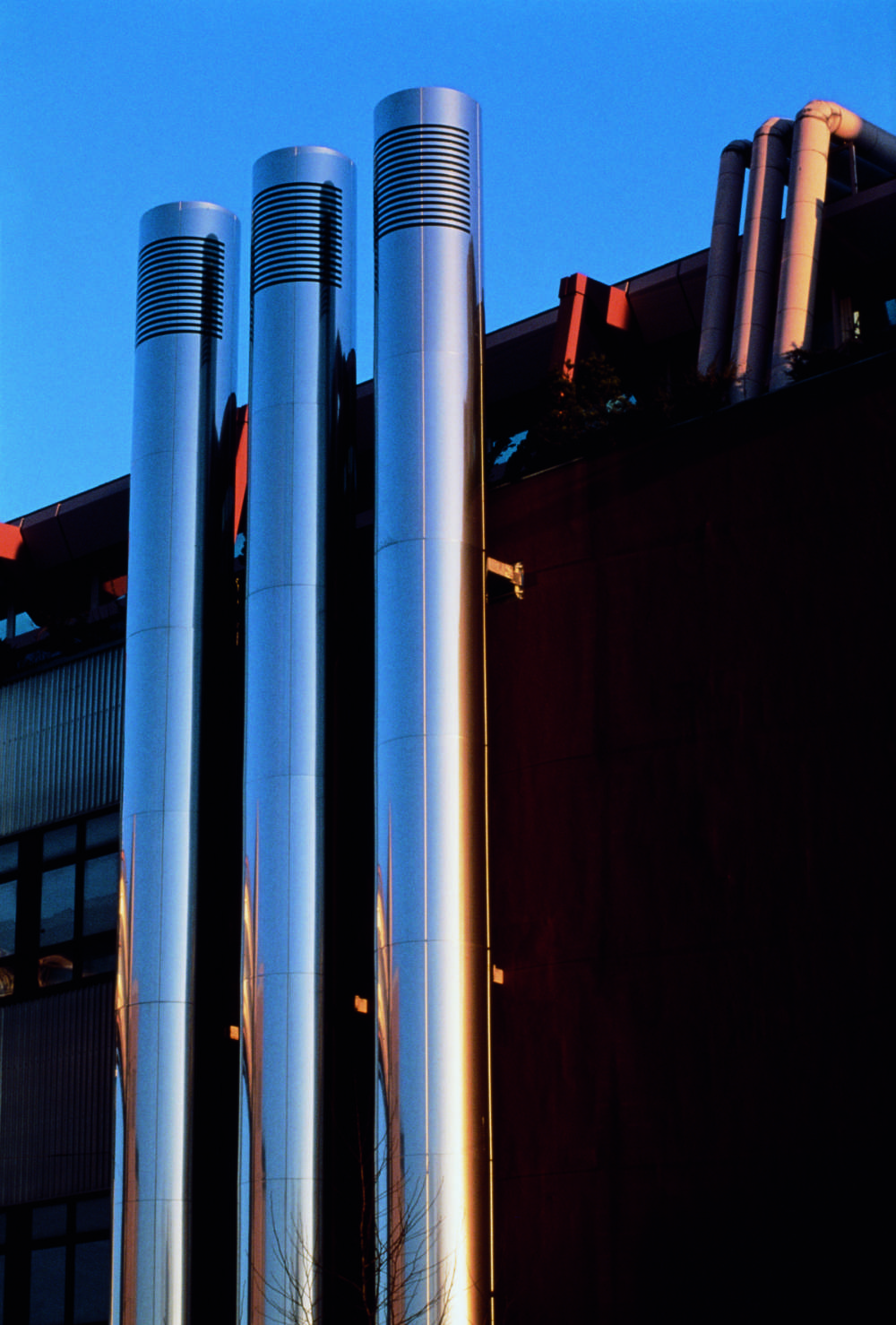 Factory 2 in Schwieberdinger Straße in Stuttgart-Zuffenhausen is supplied with fresh air through the chromium-plated inlet and exhaust ventilator cowls.