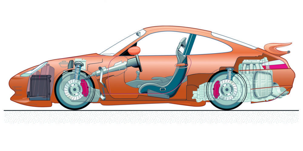 The new chassis designed in accordance with the âLSAâ concept (Light, Stable, Agile) in the 993 series finally put an end to the capriciousness of the rear engine-powered 911. It mainly affected the rear axle, which was based on a multi-link suspension tested in motor races and which facilitated excellent driving dynamics. The axle kinematics are designed to ensure that the vehicleâs suspension compresses significantly less when accelerating and driving round bends. This stabilises the overall handling. (...)