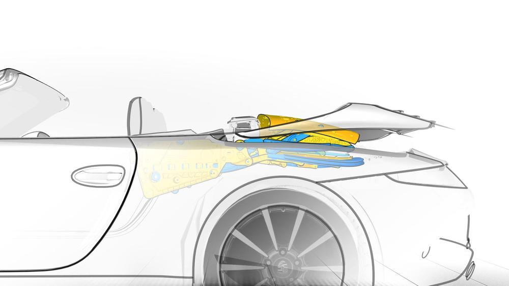 The magnesium panel bow top of the 911 Carrera Cabriolet