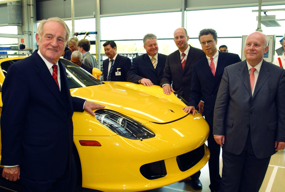 Johannes Rau (left in front), Siegfried BÃÂülow, Wolfgang Tiefensee, Wolfgang DÃÂürheimer, Georg Milbradt (behind the car from left)