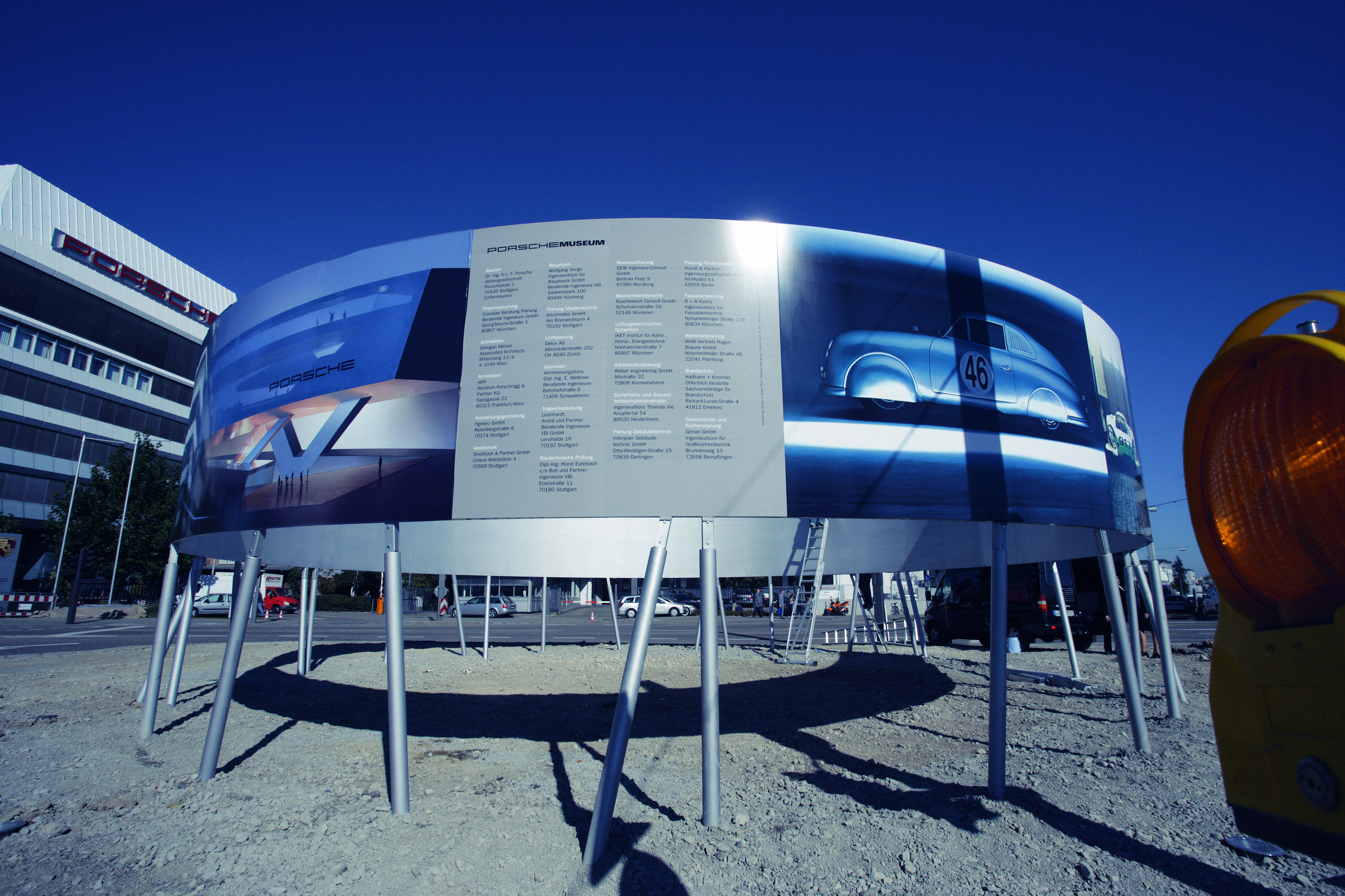 With the installation of the special construction site sign, the official construction start of the new Porsche Museum began.