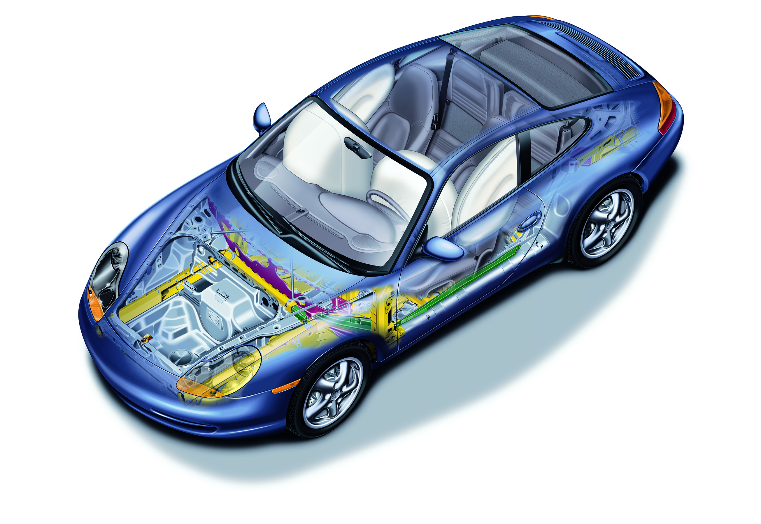 Passive safety in vehicle interior: Fullsize airbag for driver and passenger and Porsche Side Impact Protection System (POSIP)