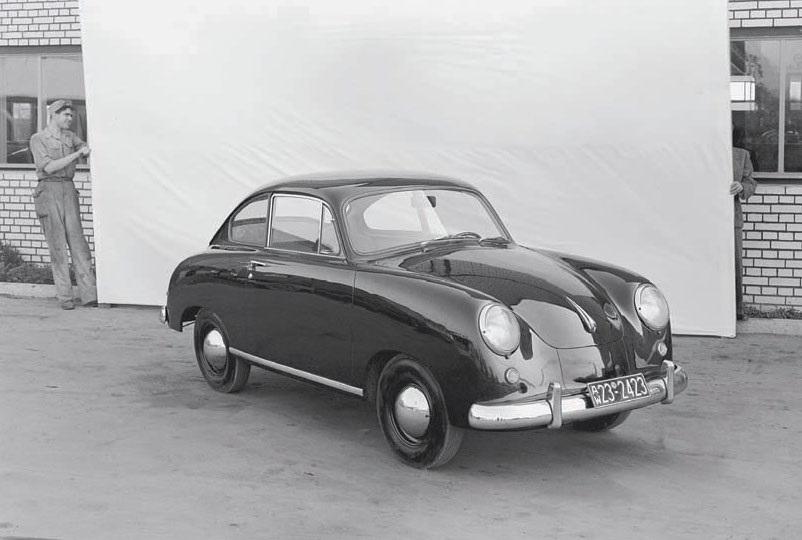 BETWEEN NEXT AND NEW For two decades Erwin Komenda had success providing attractive vehicles to Porsche. By the early 1950s, that was about to change. After meeting Ferdinand Porsche at Steyr in Austria in 1929, Komenda moved to Daimler-Benz. In late 1931, he joined Ferdinand Porsche’s company where, among other projects, he created the shapes of the legendary Auto Union Grand Prix cars with Porsche’s long-trusted aerodynamics engineer Josef Mickl. While working with Ferdinand, he fashioned the Volkswagen. He morphed it into the Typ 64K10 for the 1939 Berlin-Rome road race, an intra-national competition invented to show off Germany’s fast, smooth Autobahn. While the race never occurred, Komenda and his craftsmen assembled three of the sleek Typ 64 coupes. After World War II, Komenda adapted the forms and shapes of the Typ 64 into a prototype mid engine roadster in 1948 and from there, a series of production coupes and cabriolets in the 1950s. As an engineer, he formed the car bodies to surround the chassis, suspension, drivetrain, and passenger components in the most efficient way possible, working from the inside out. His job title at Porsche was head of the bodywork construction department and his training and experience convinced him that rounded forms imparted great strength to thin steel. He maintained that door and deck lid cuts set well inboard of curved metal welding seams were less likely to stress or tear the panels. These rules shaped his car bodies as characteristically as any panel beater’s hammer.