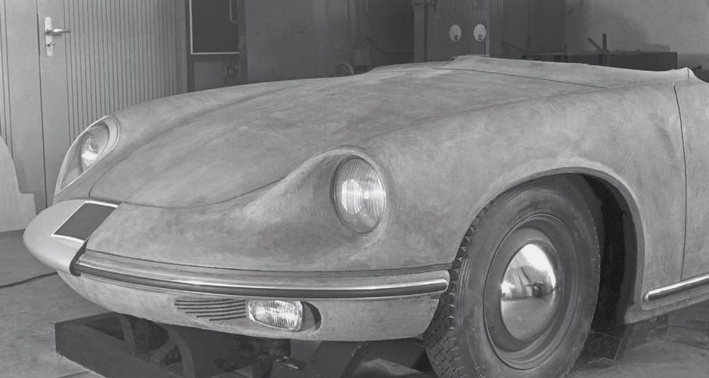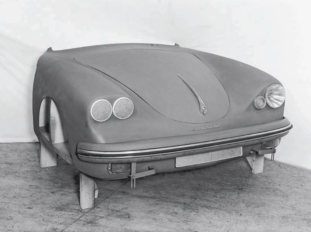 Through January 1956, Heinrich Klie experimented with new front-end ideas. This 1:1-scale clay was an early concept on the 695 platform. Porsche Archiv