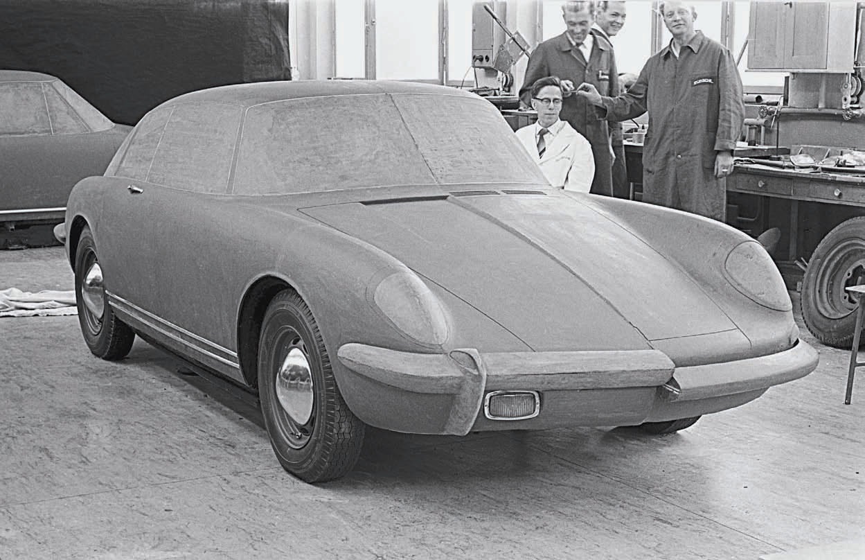 Ideas flew fast and furiously from the body engineering design studio. This 1:10-scale concept appeared on June 15, 1957, labeled “Sportwagen.” Porsche Archiv