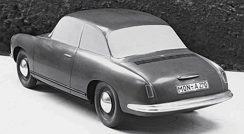 Body designer Gerhard Schröder offered this step down rear window variation on the Typ 695 on July 26, 1957. He completed the Plasticine model in 1:7.5 scale. Porsche Archiv