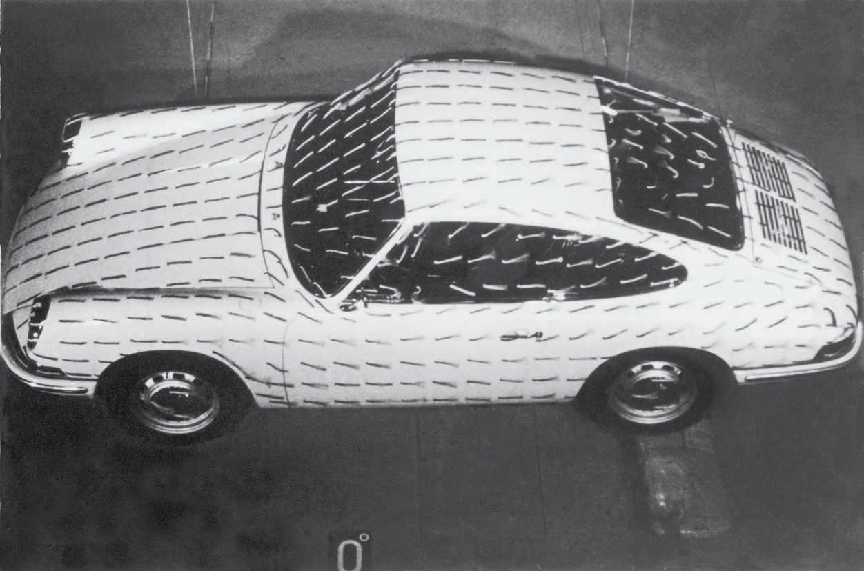 The 901 was well formed by the time it reached the Stuttgart University wind tunnel in March 1964. This was hardly its first trip to the tunnel, and by this time, one or another of the 901 prototypes had been on display at the six most important auto shows in Europe. Porsche Archiv